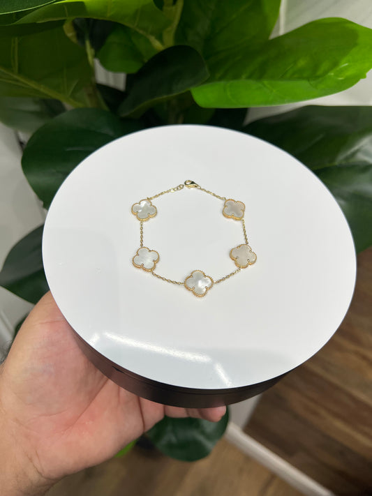 751- NEW 14K White Trebol Bracelet 7” (11.5mm).W.G