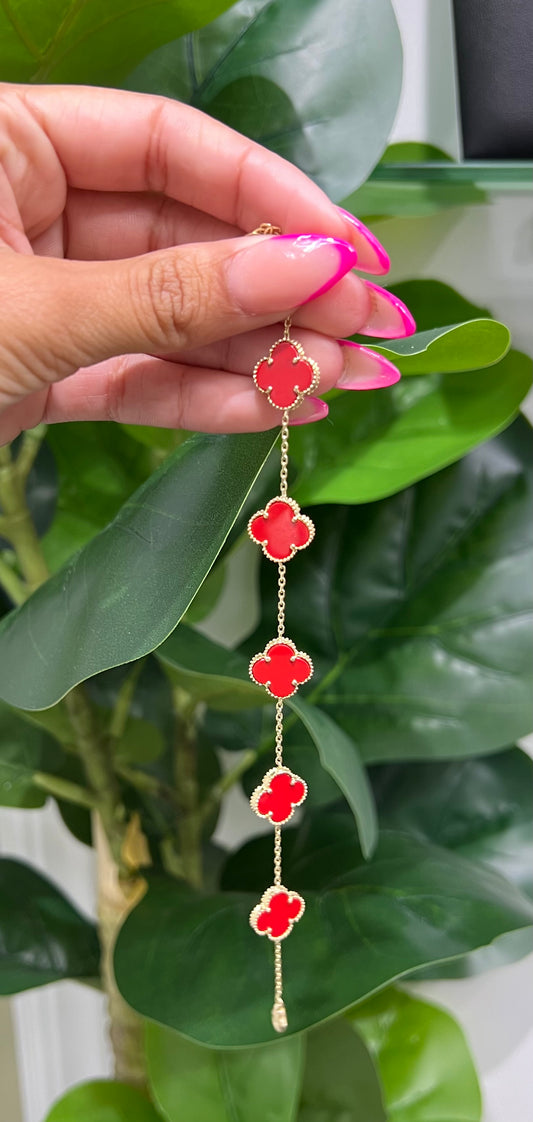 1132- NEW 14K Red Trebol Bracelet 7”+.5” ext (11.7mm) W.G
