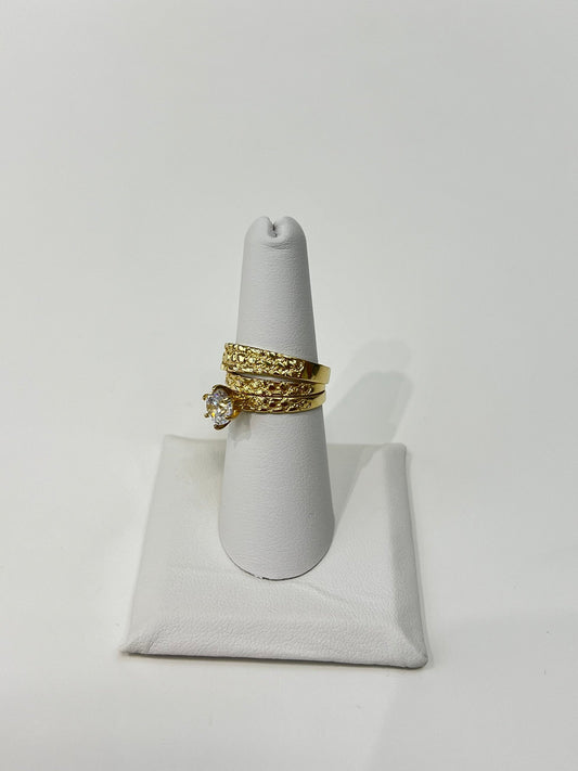 1373- NEW 10K Nugget Style Wedding Rings Trio W.G