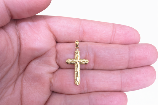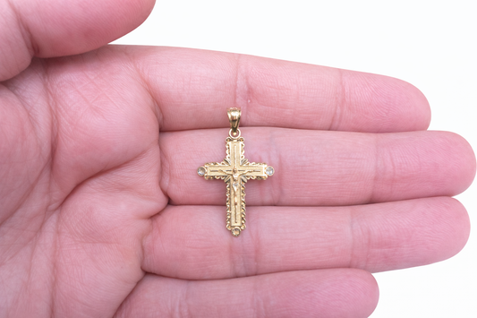 1561- NEW 10K Diamond Cut Cross Pendant W.G