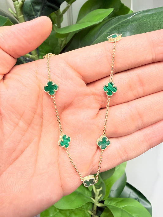 1610- NEW 14K Green Trebol Necklace 19"+ 1" ext (8mm)W.G