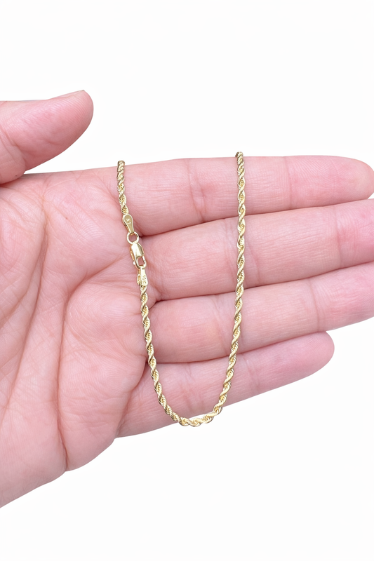 1555- NEW 10K Hollow Rope Chain 18” (2.4mm) W.G