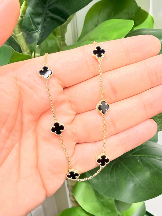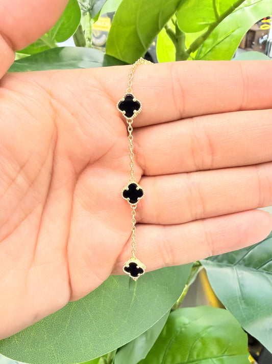 1604- NEW 14K Black Trebol Bracelet 7.5”+ 1” ext W.G