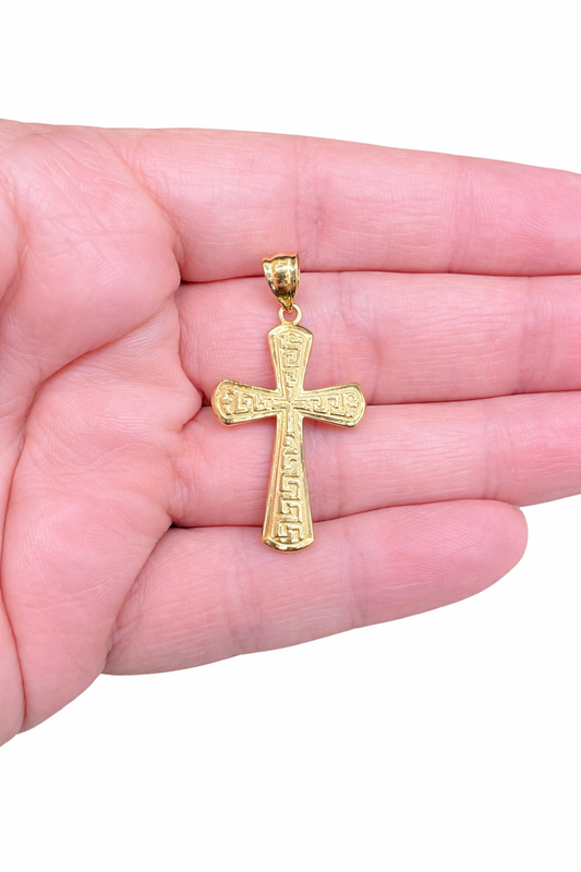 1568- NEW 10K Gold Cross Diamond Cut Pendant W.G
