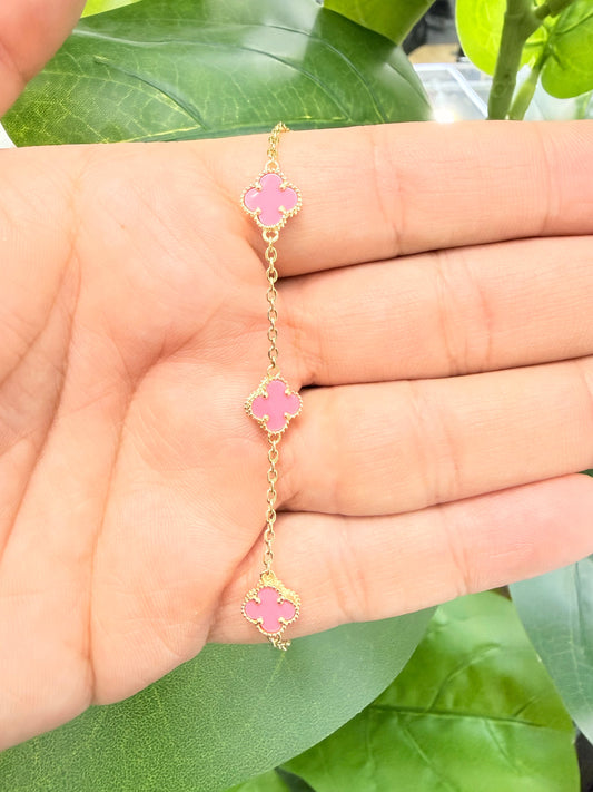 1603- NEW 14K Pink Trebol Bracelet 7.5”+1” ext W.G
