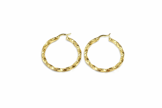 1557- NEW 10K Fancy Square Twist Hoop Earrings (42x4mm) W.G