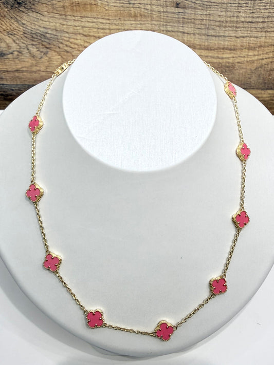 1608- NEW 14K Pink Trebol Necklace 19"+1" Ext (8mm) W.G