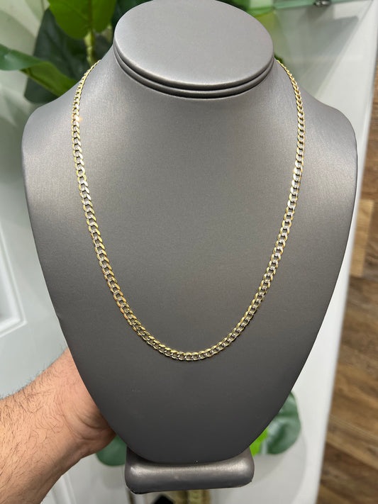 1263- 10K Solid Flat Cuban Curb Two Tone Chain 20" (4.7mm) W.G