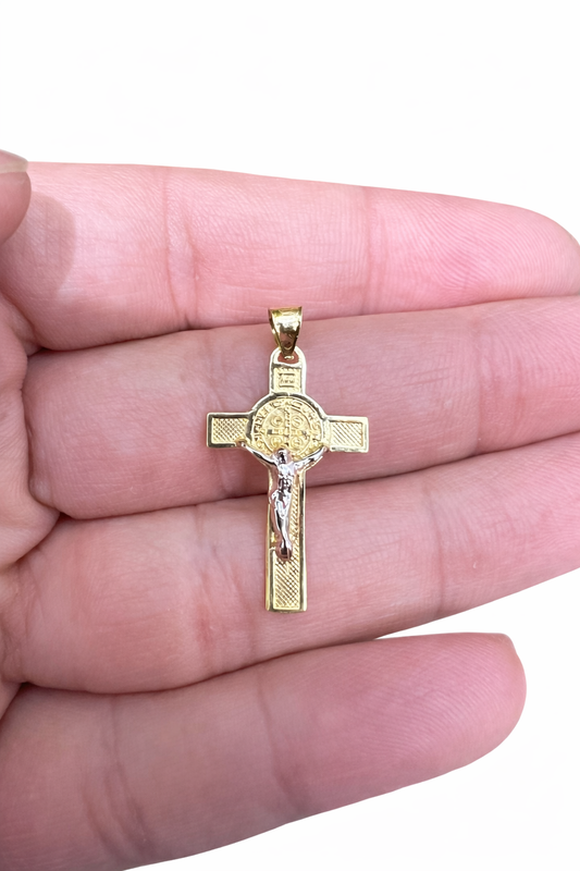 1563- NEW 10K San Benito Two-Sided Crucifix Cross Pendant W.G