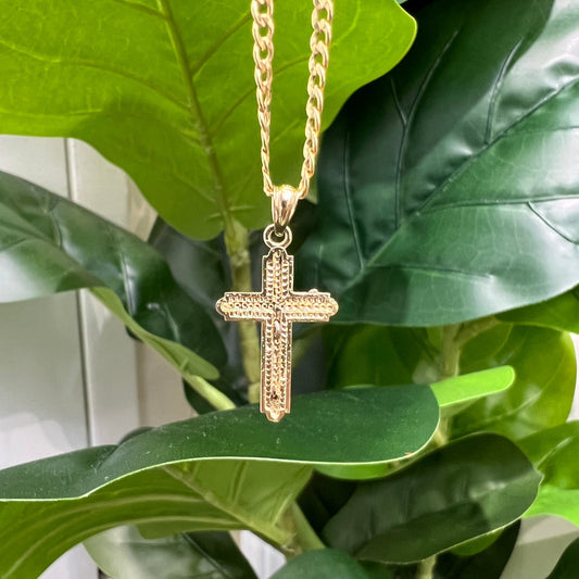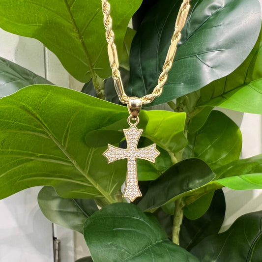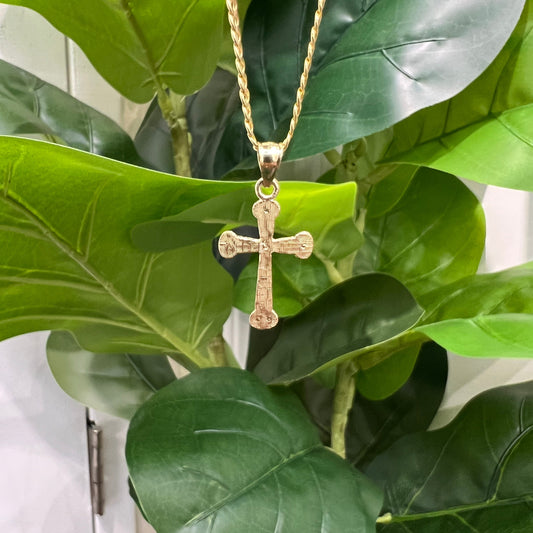 1292- 14K Gold Cross With Dollar Sign Pendant W.G