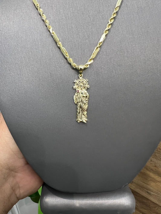 C49-NEW 10K Hollow Milano Chain 18” (3mm) & 10K St. Jude Pendant SET W.G
