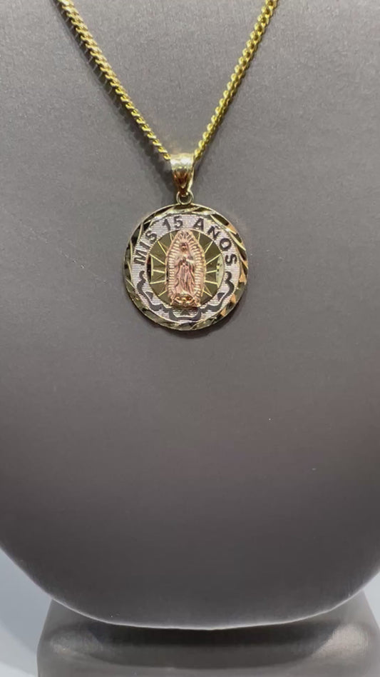 1286- 10K Our Lady Of Guadalupe Round Pendant W.G
