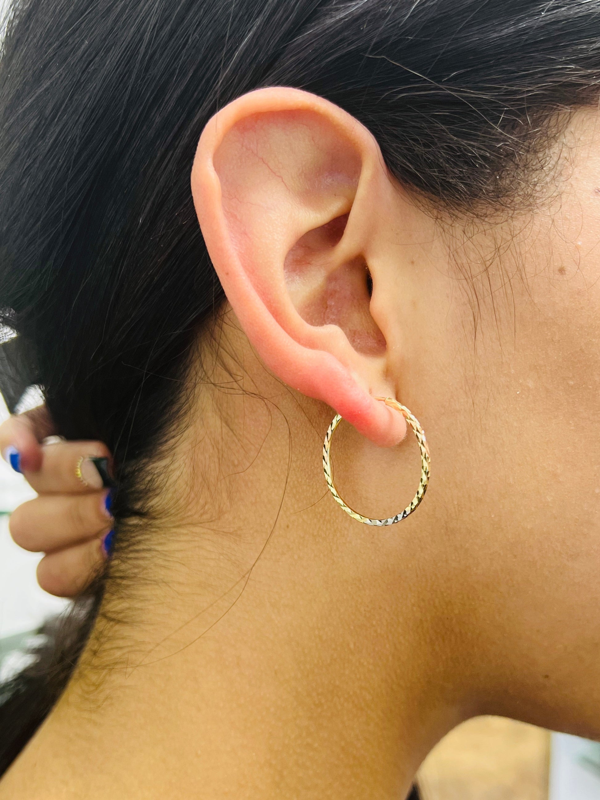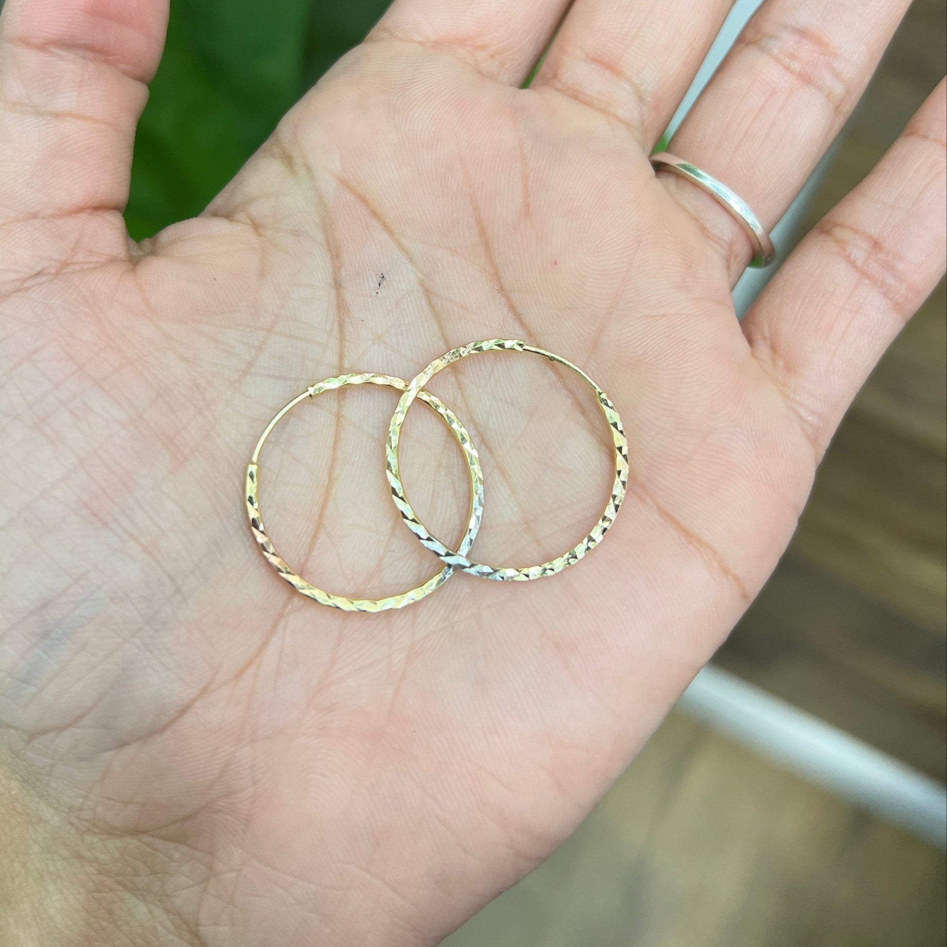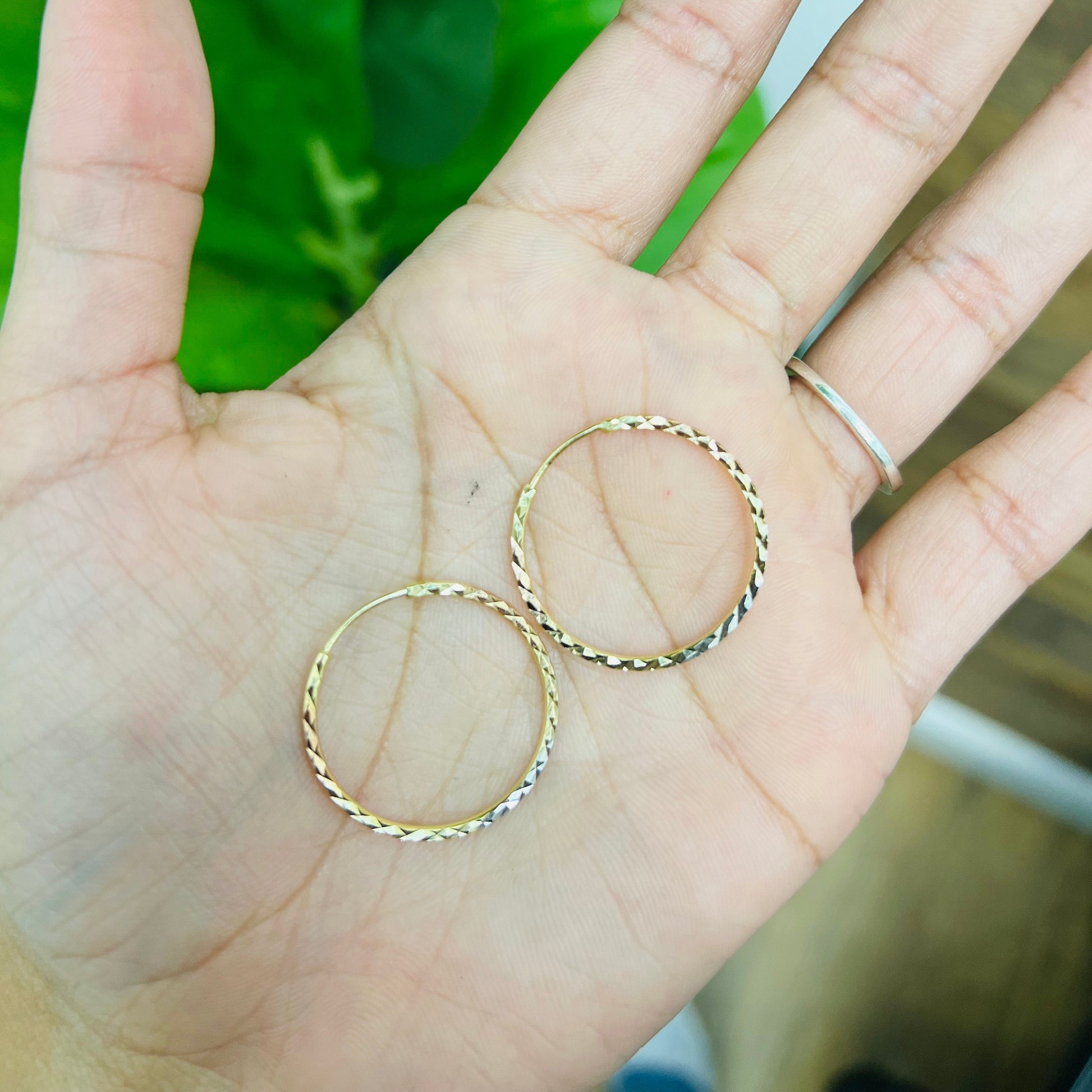 00152- Aros pequeños y finos de oro tricolor de 14 quilates