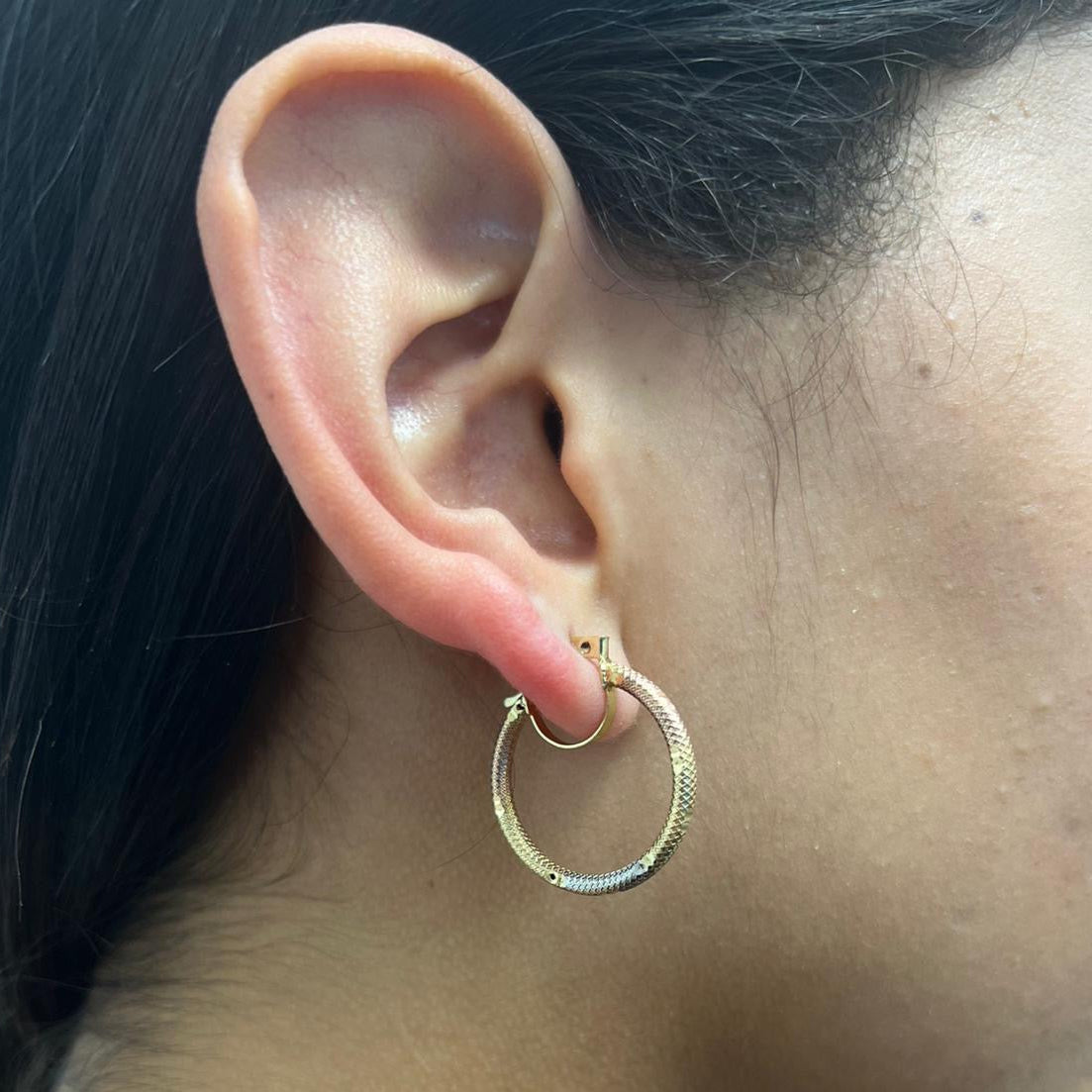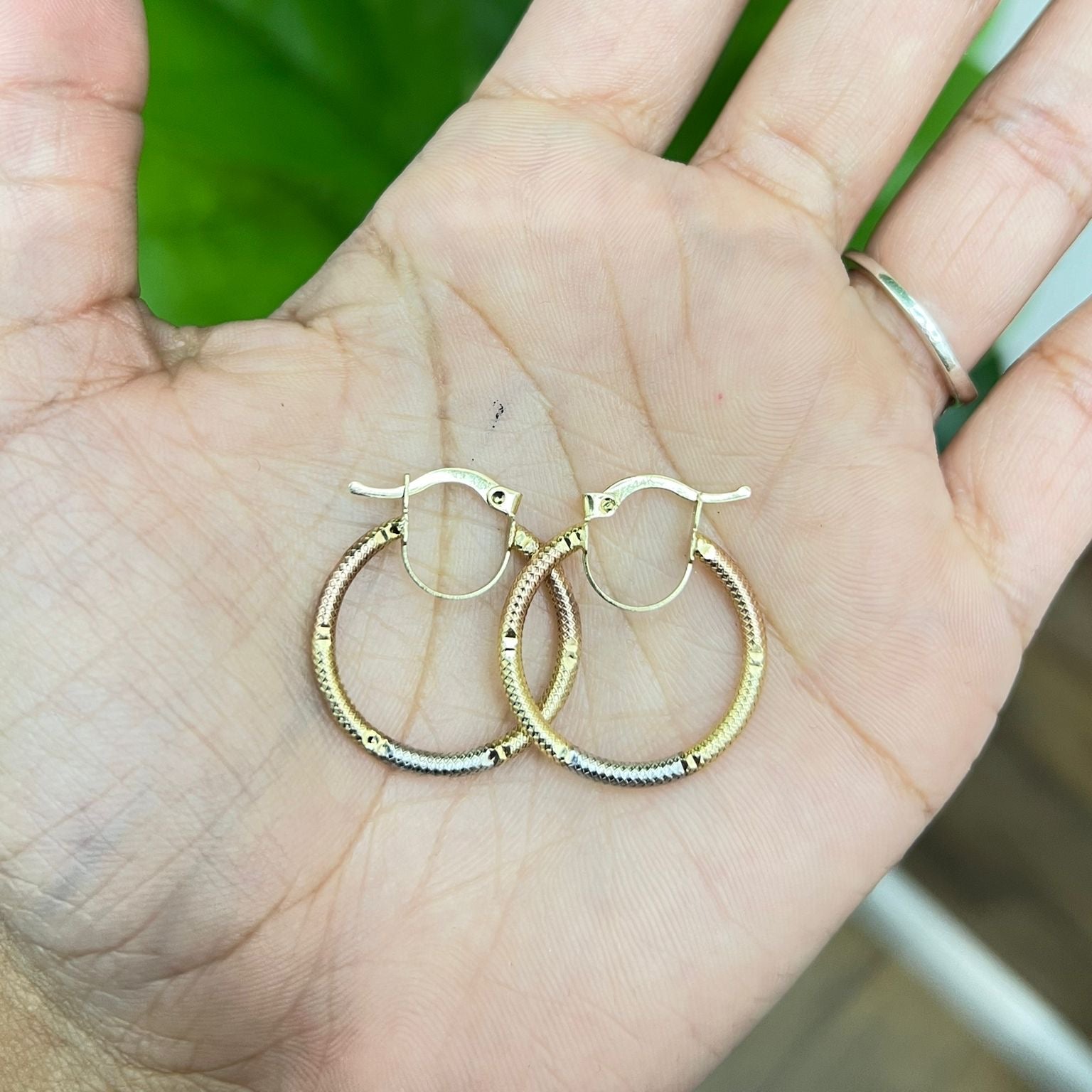 00153- Pendientes de aro de oro tricolor hueco de 14 quilates