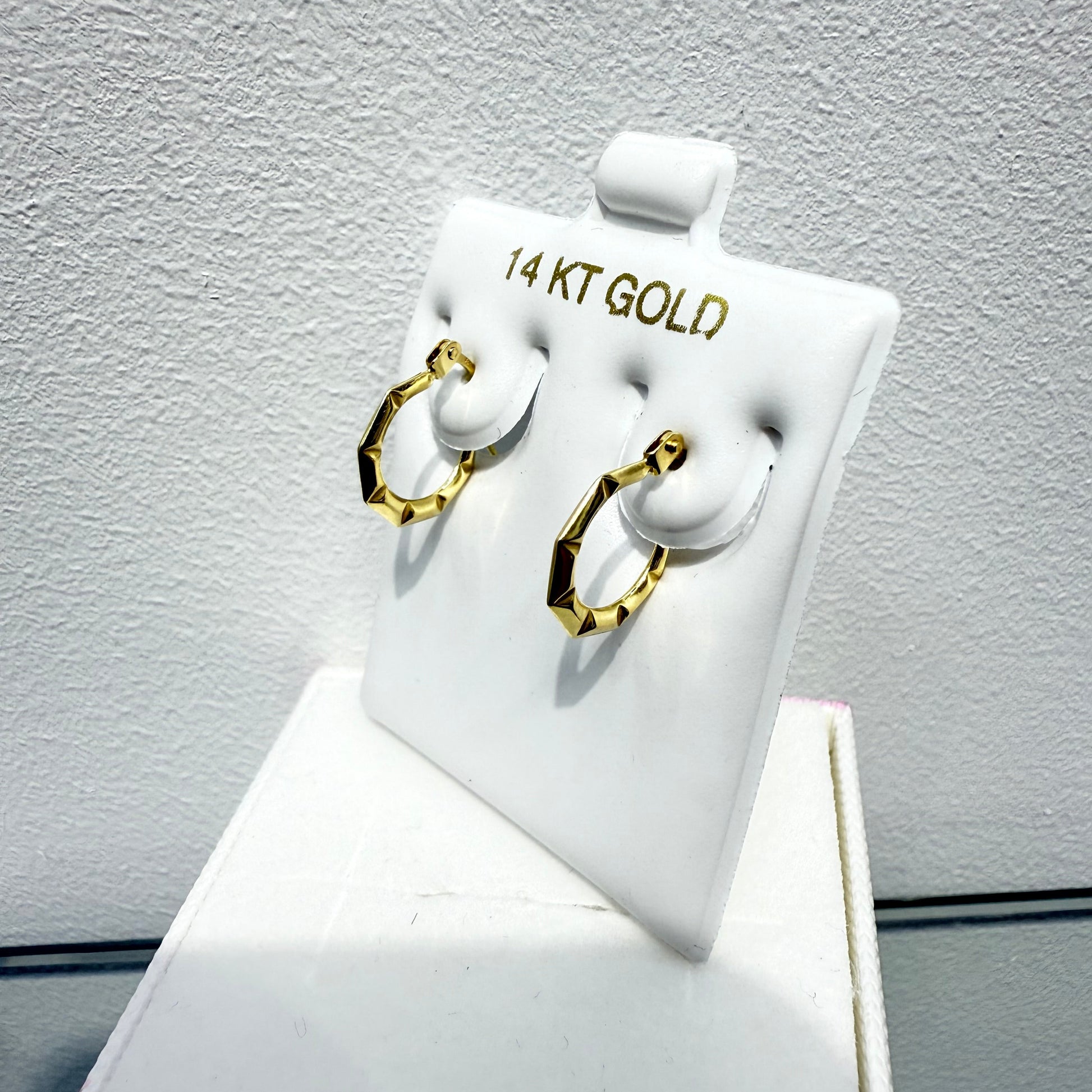 NEW 14K Small Round Lightweight Bamboo Hoop Earrings. Made of 14k yellow Gold