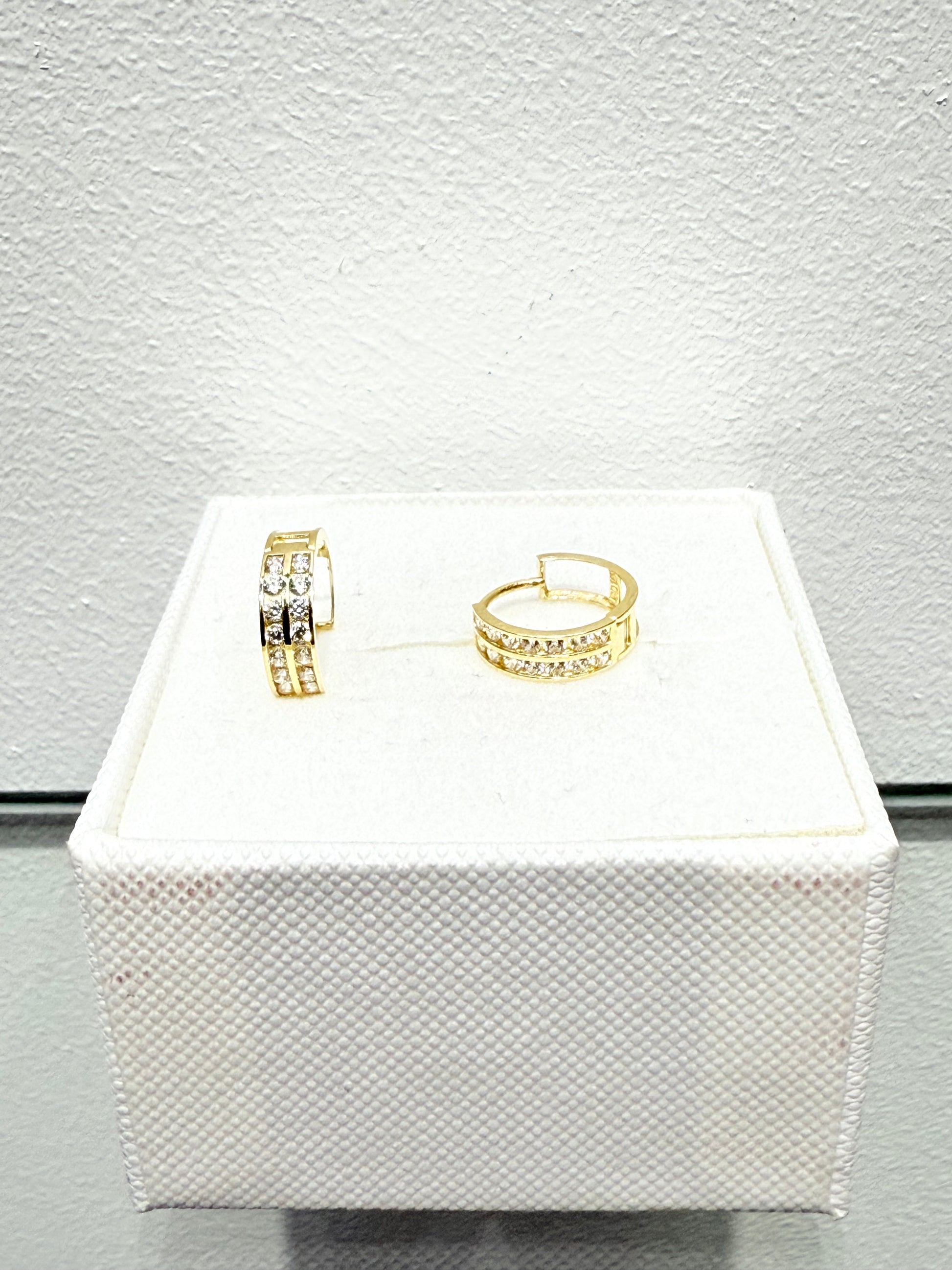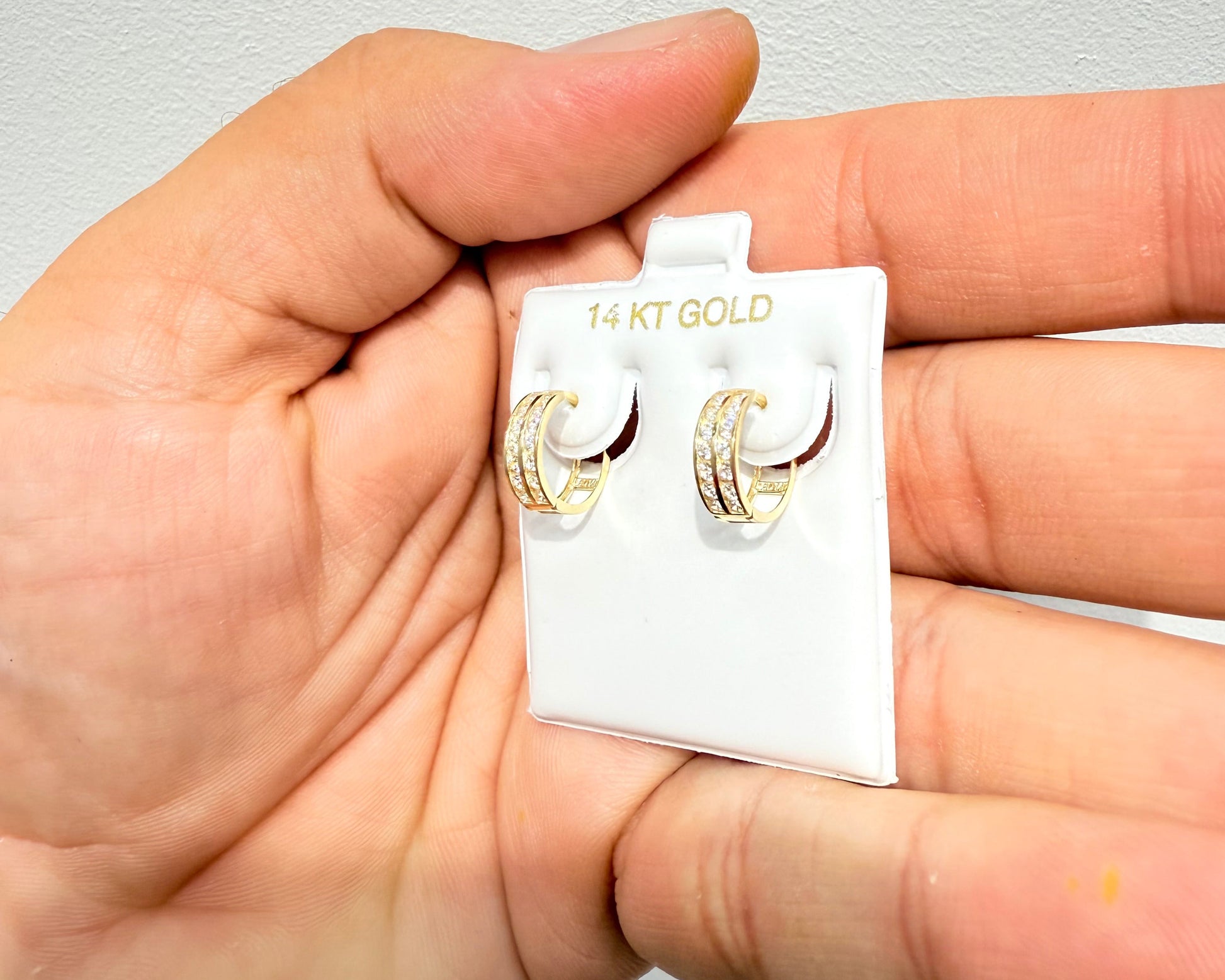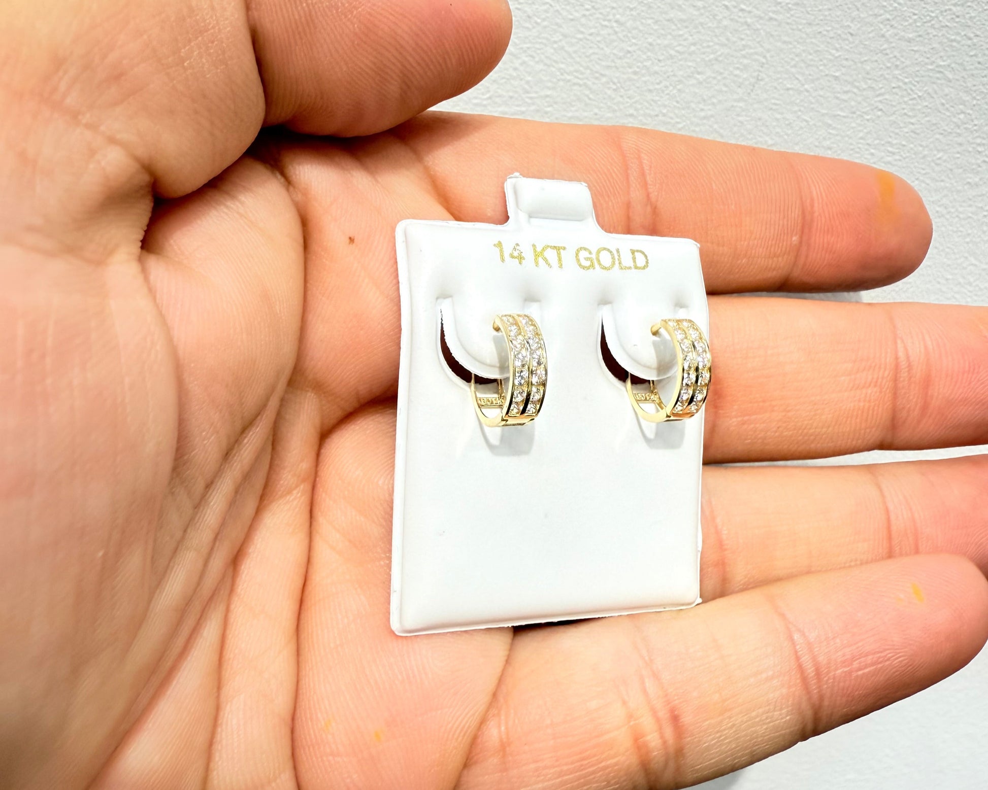 NEW 14K Double Row Huggie Hoop Earrings Clear Cz. Made of yellow gold.