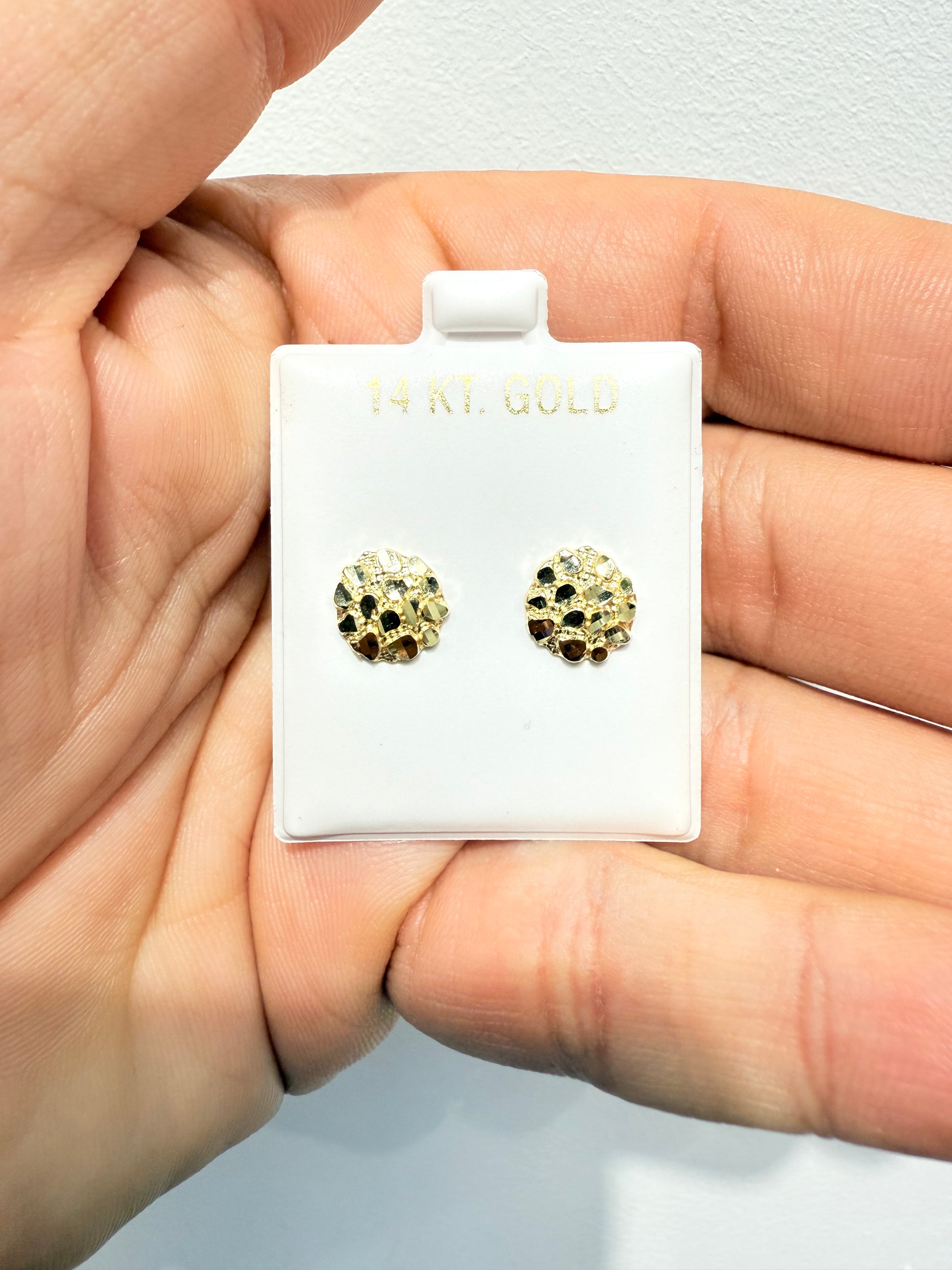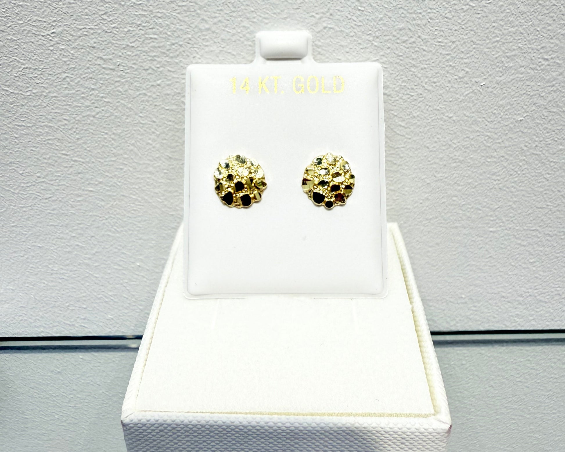 NEW 14K Round Nugget Stud Earrings. Made of 100% 14k Yellow Gold
