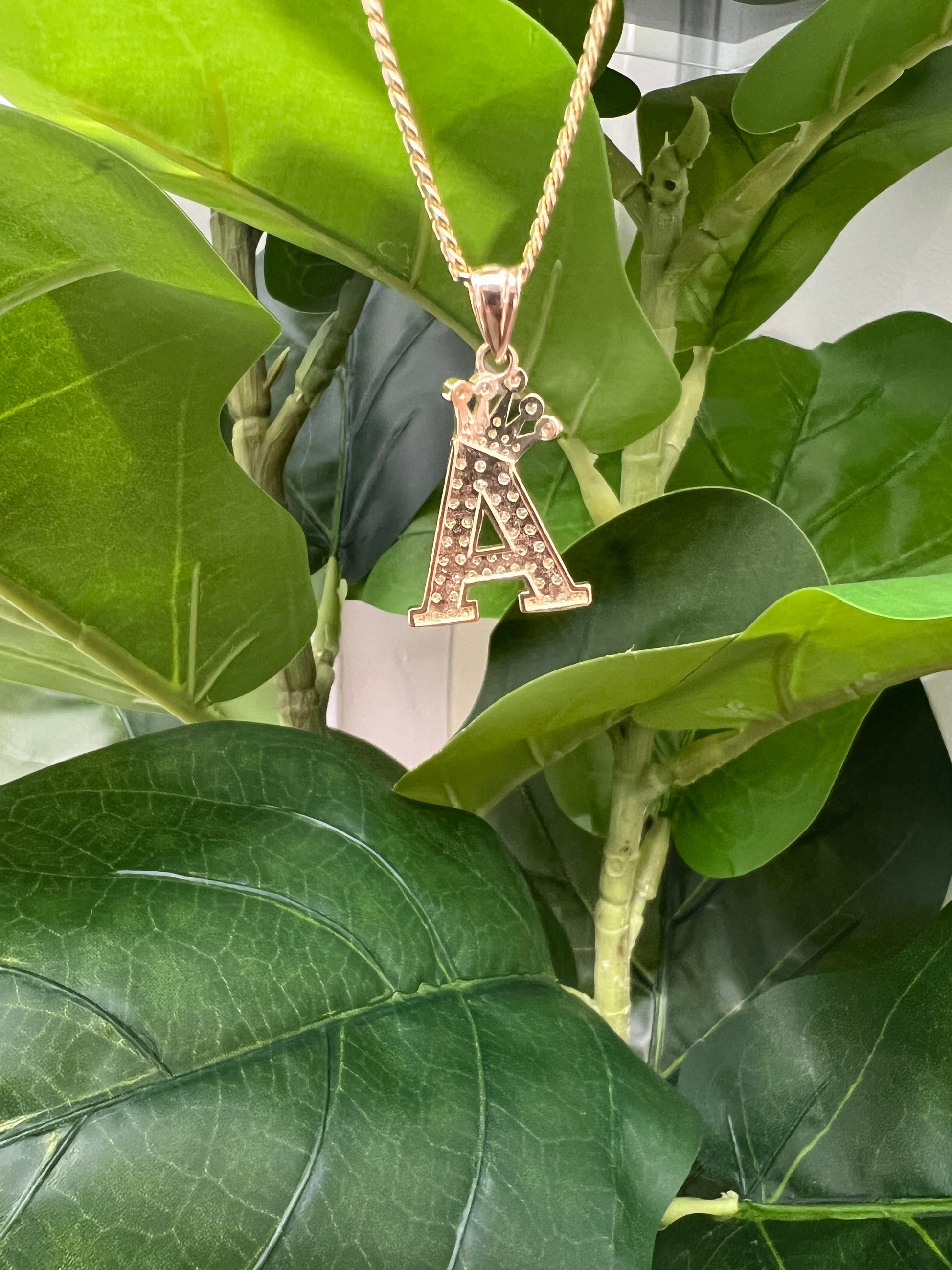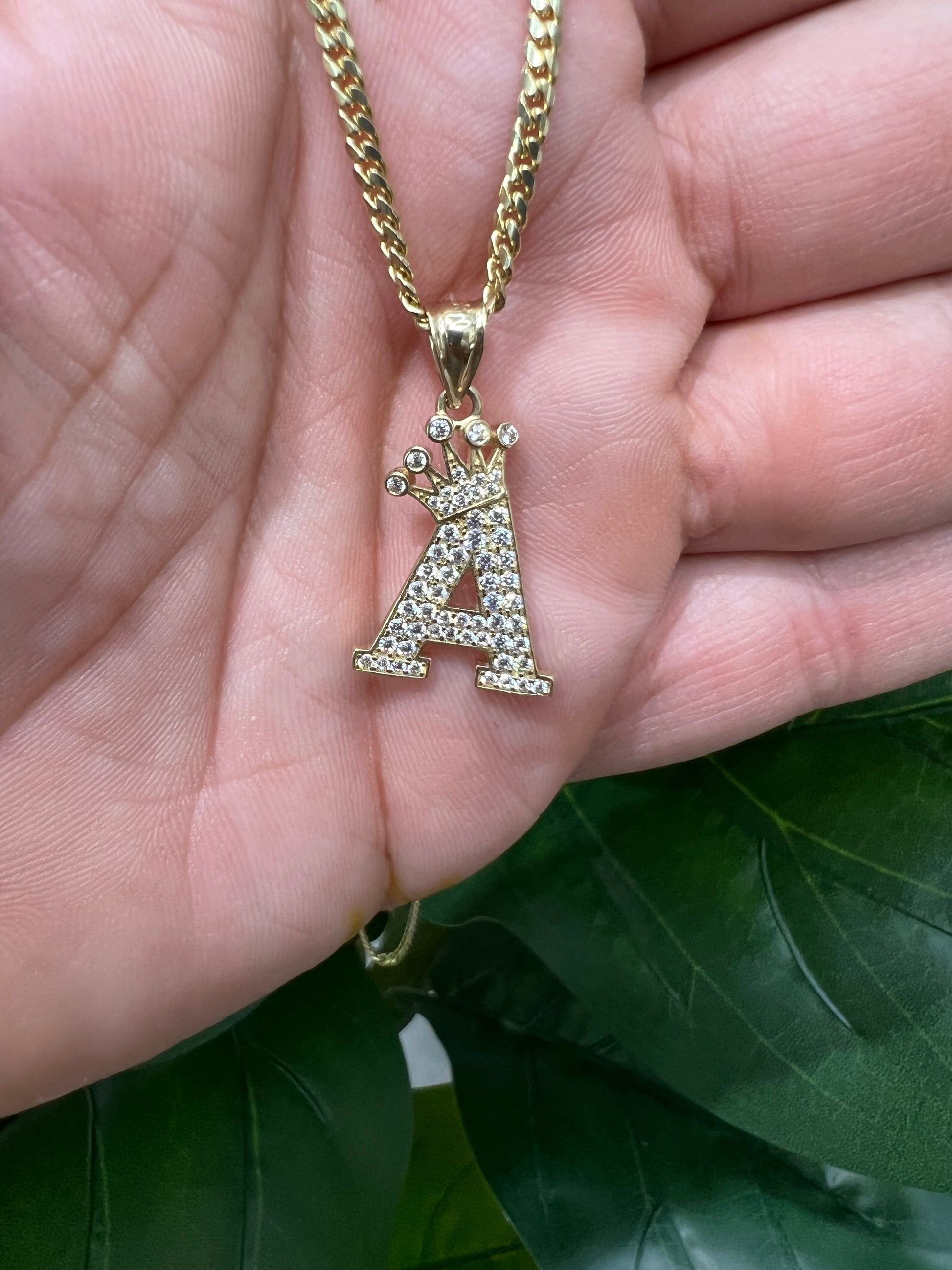 1211- NEW 14K Full Cz Letter A Crown on Top Pendant W.G