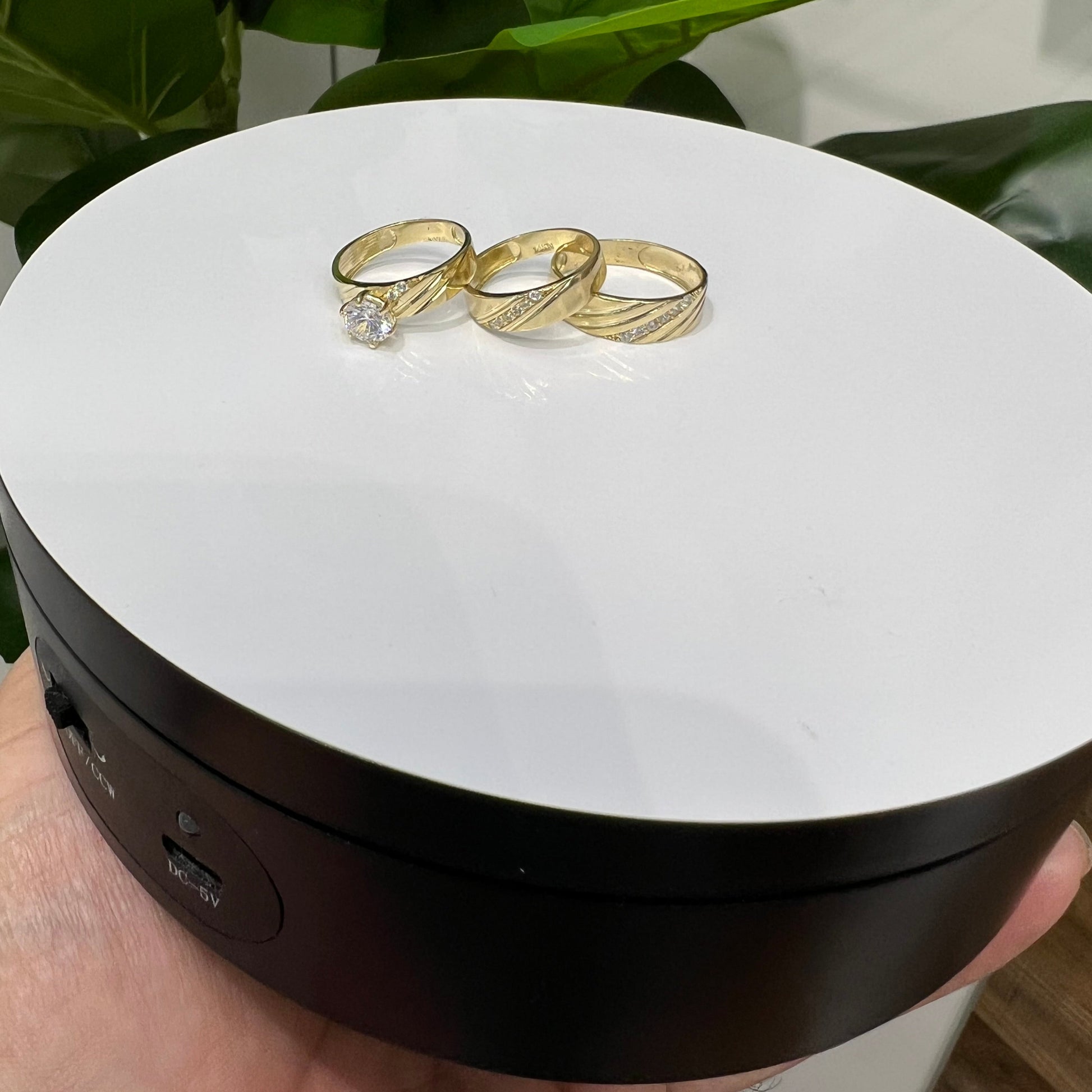 14K Yellow Gold Rings with clear cubic zirconia.