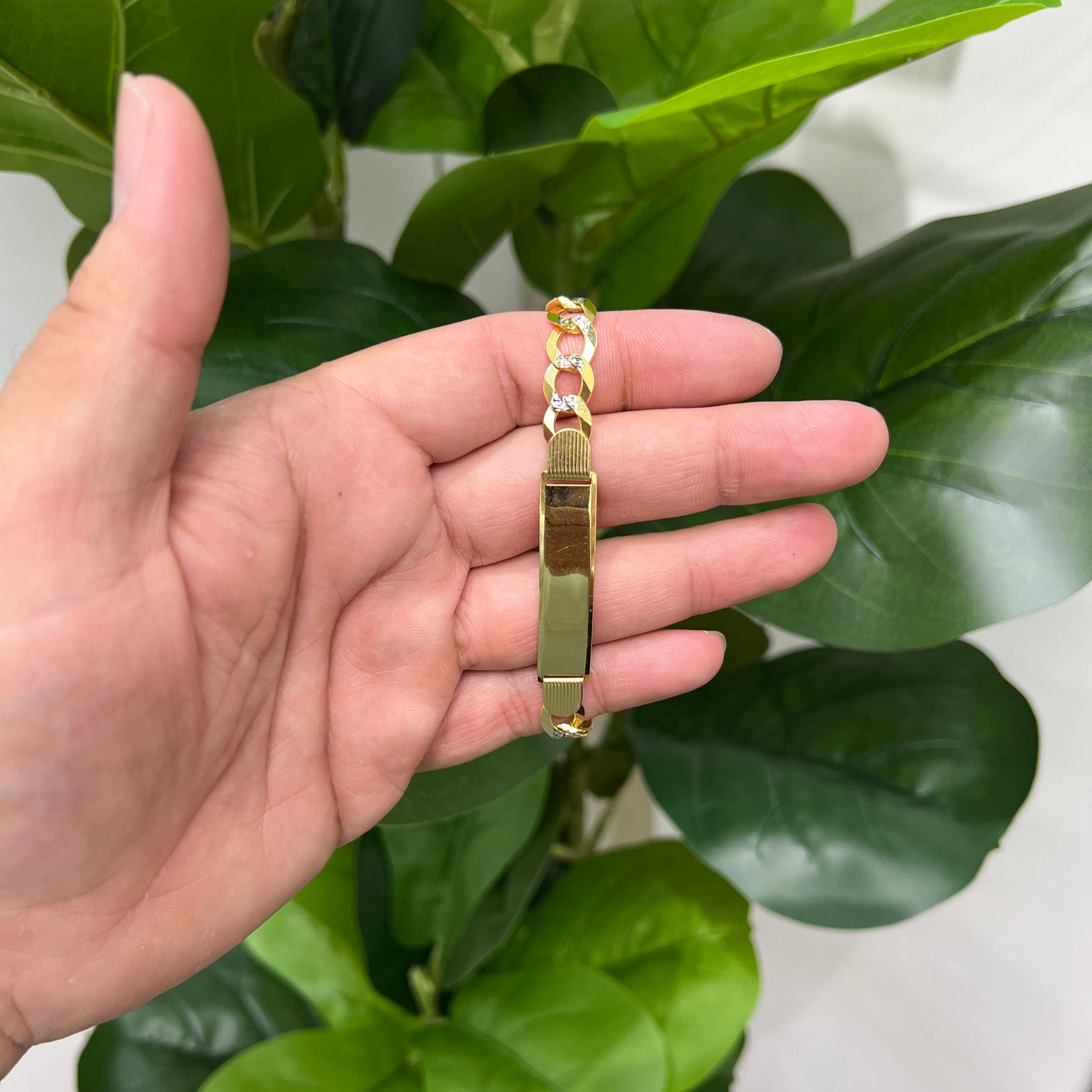 NEW 14K Solid Flat Cuban Curb ID Bracelet Two tone 8 ”. Made of real 14K yellow gold.