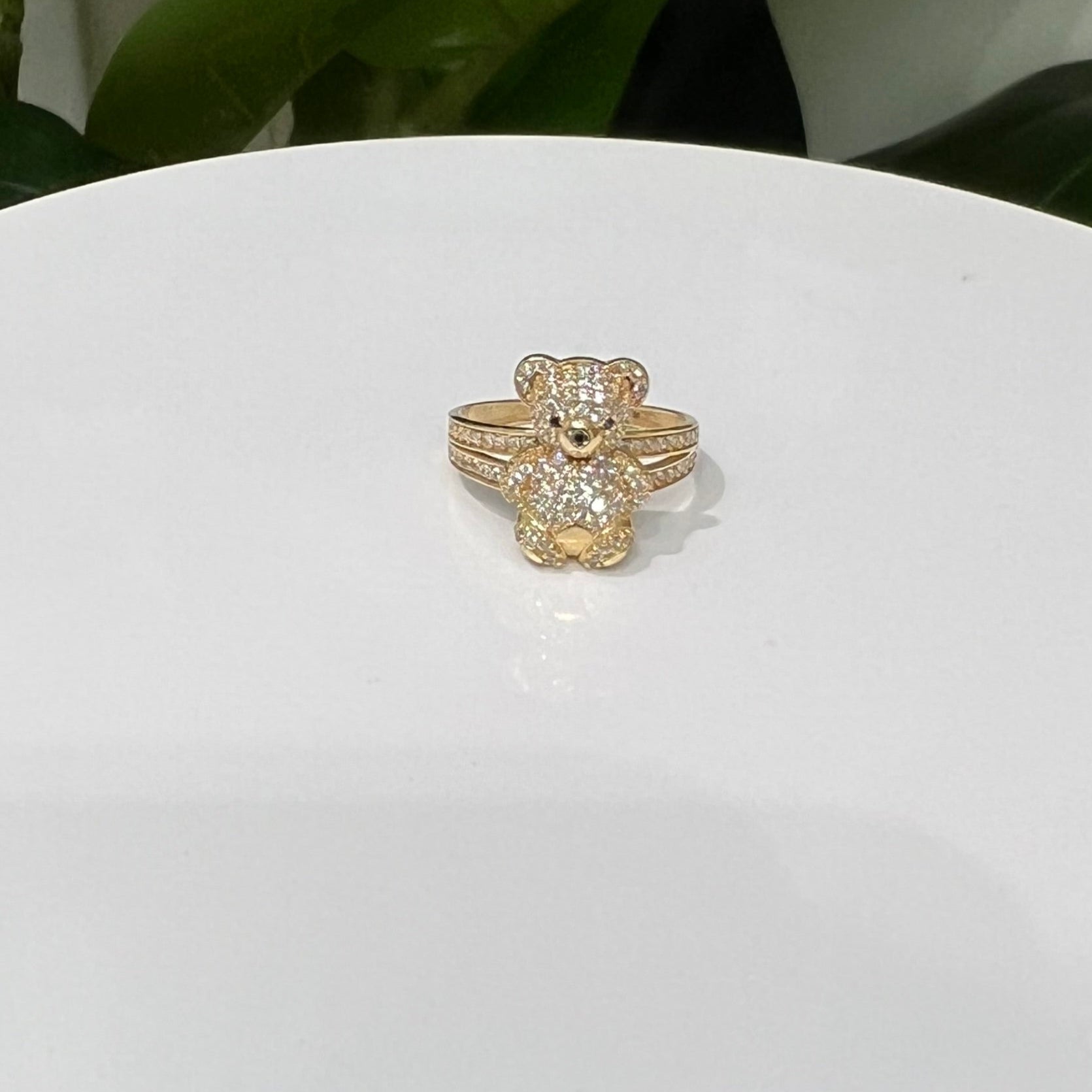 1243- NEW 14K Full Cz Body Teddy Bear Gold Ring W.G