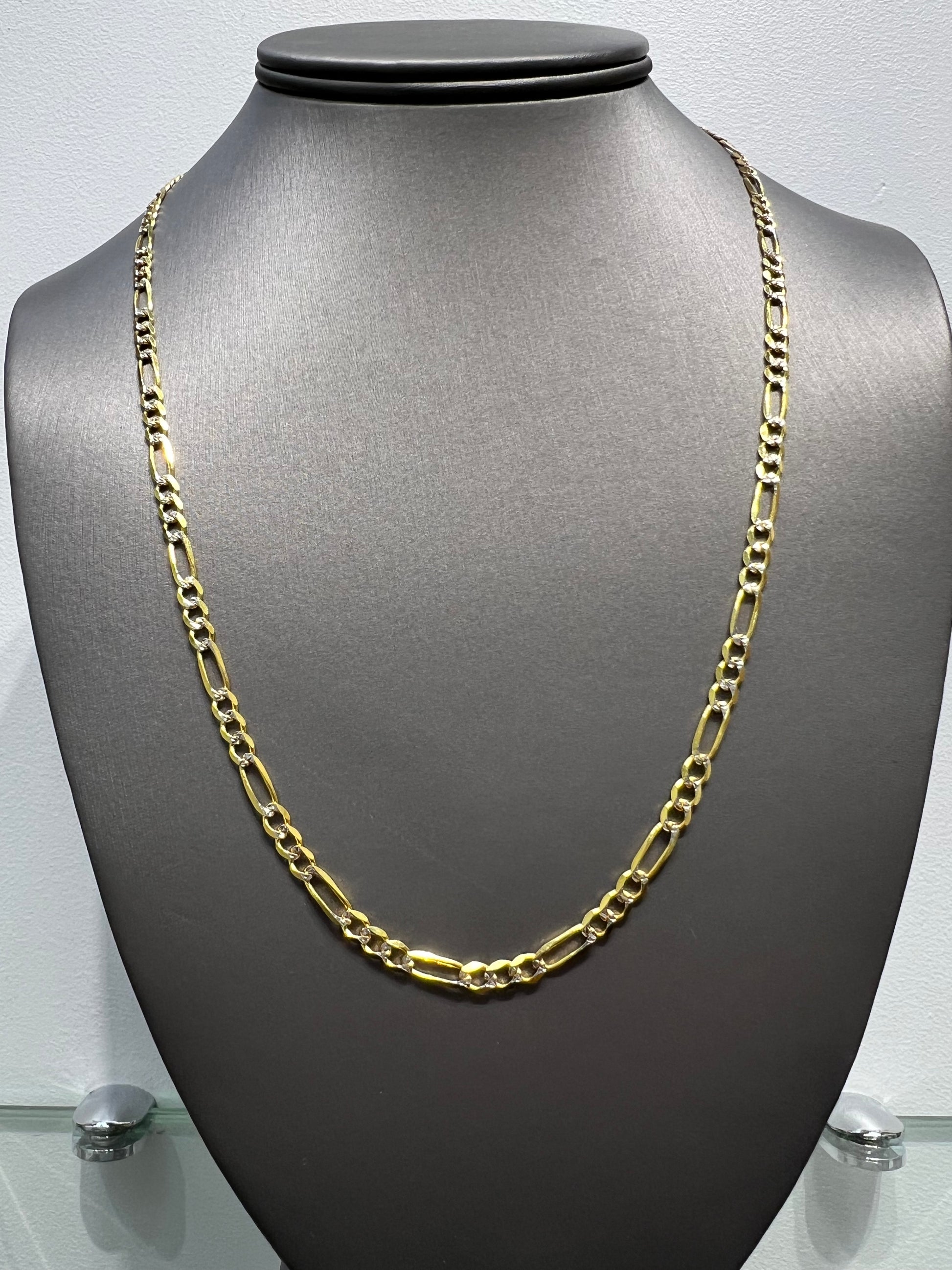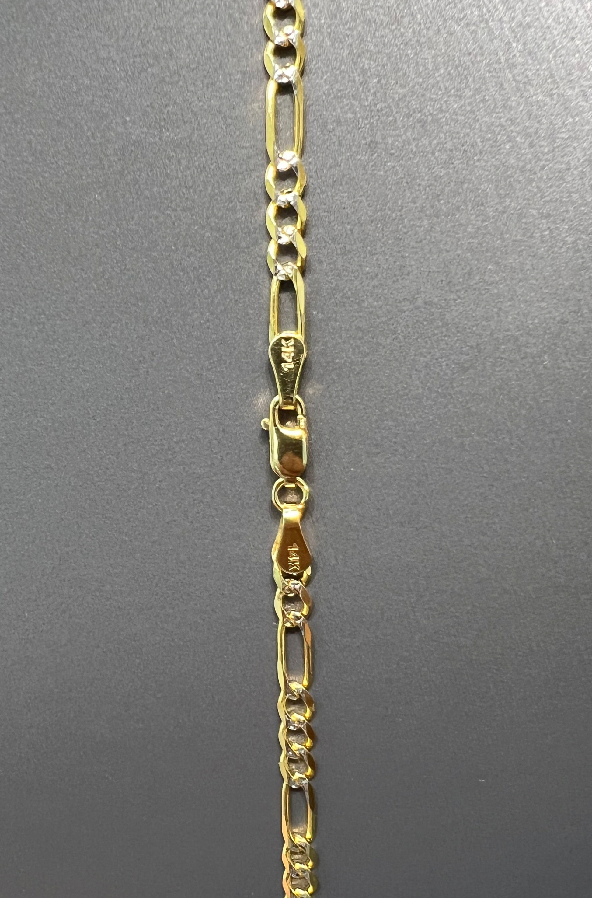 NEW 14K Solid Figaro Link Two tone 22” made of Real 14k Yellow Gold