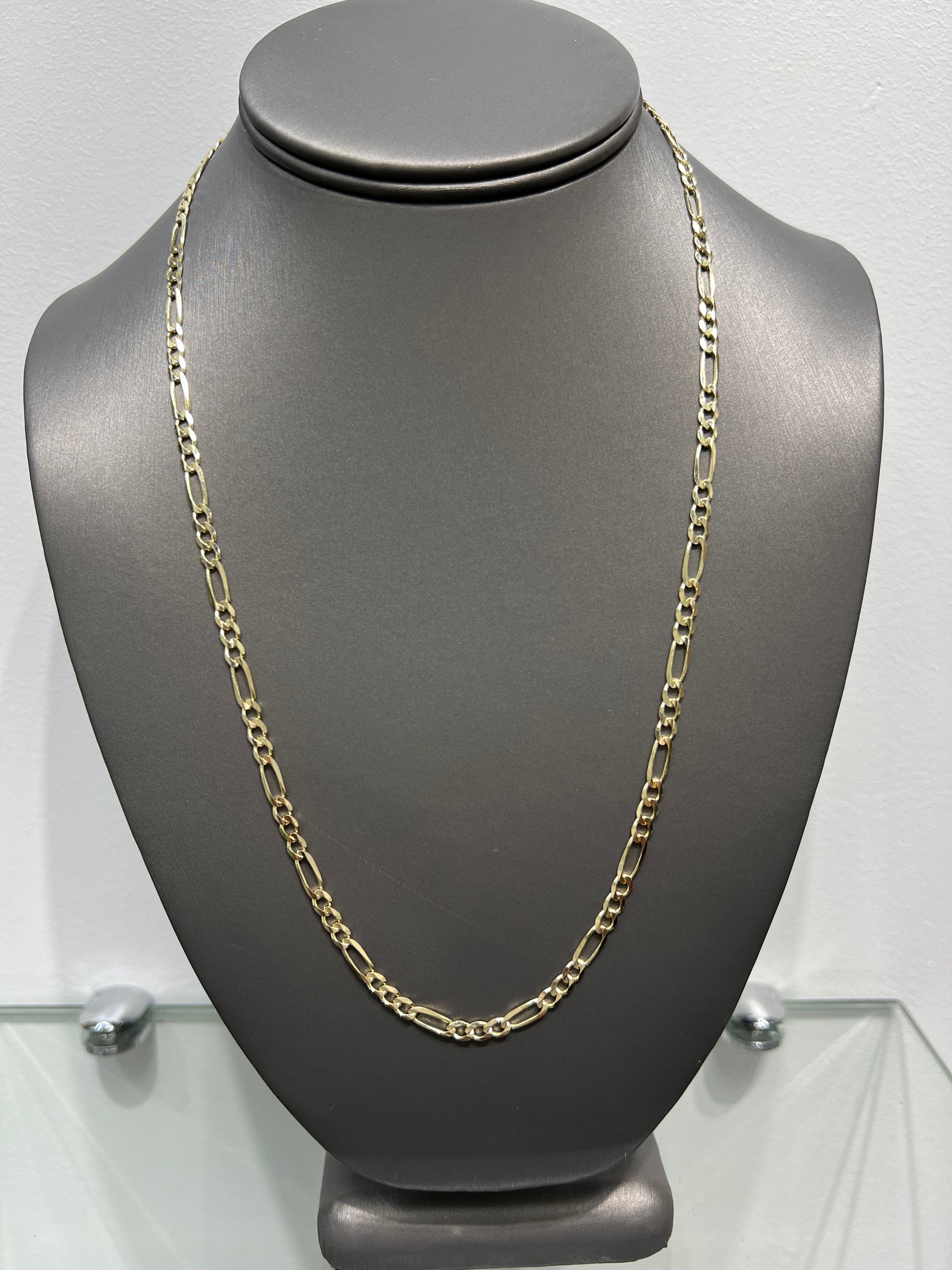 1255- NEW 14K Solid Figaro Chain 22" (4mm) W.G