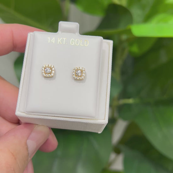 NEW 14K Gold Square Full Cz Stud Earrings (6.4mm) Made of 14k Yellow Gold