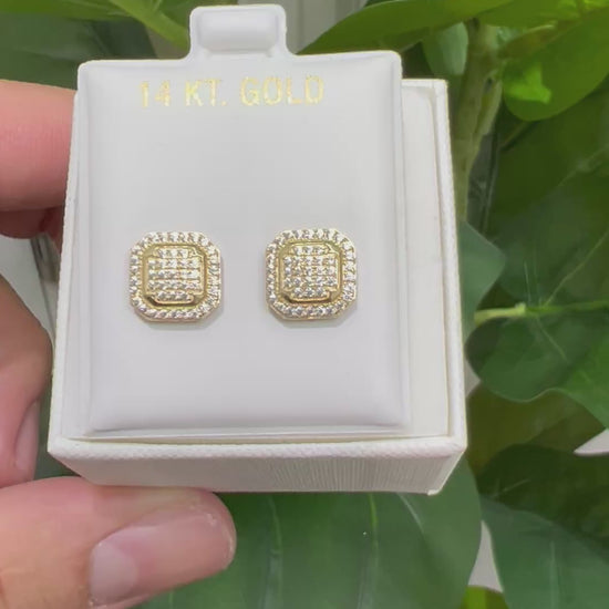 NEW 14K Gold Square Full Cz Stud Earrings (10mm) Made of 14k Yellow Gold