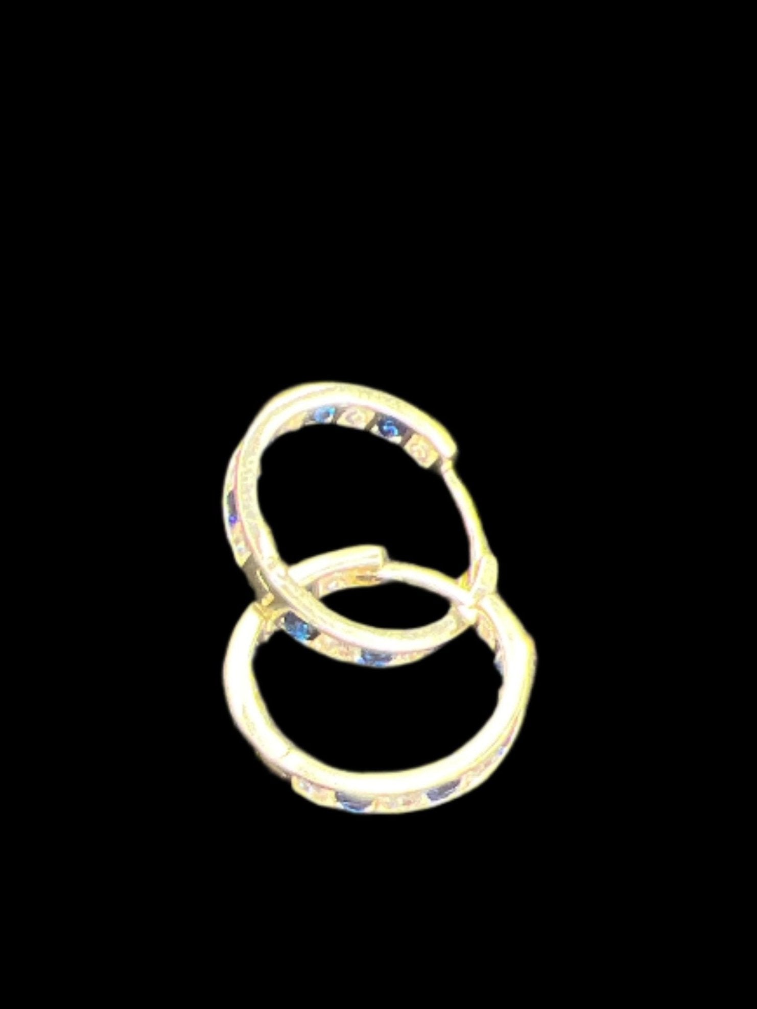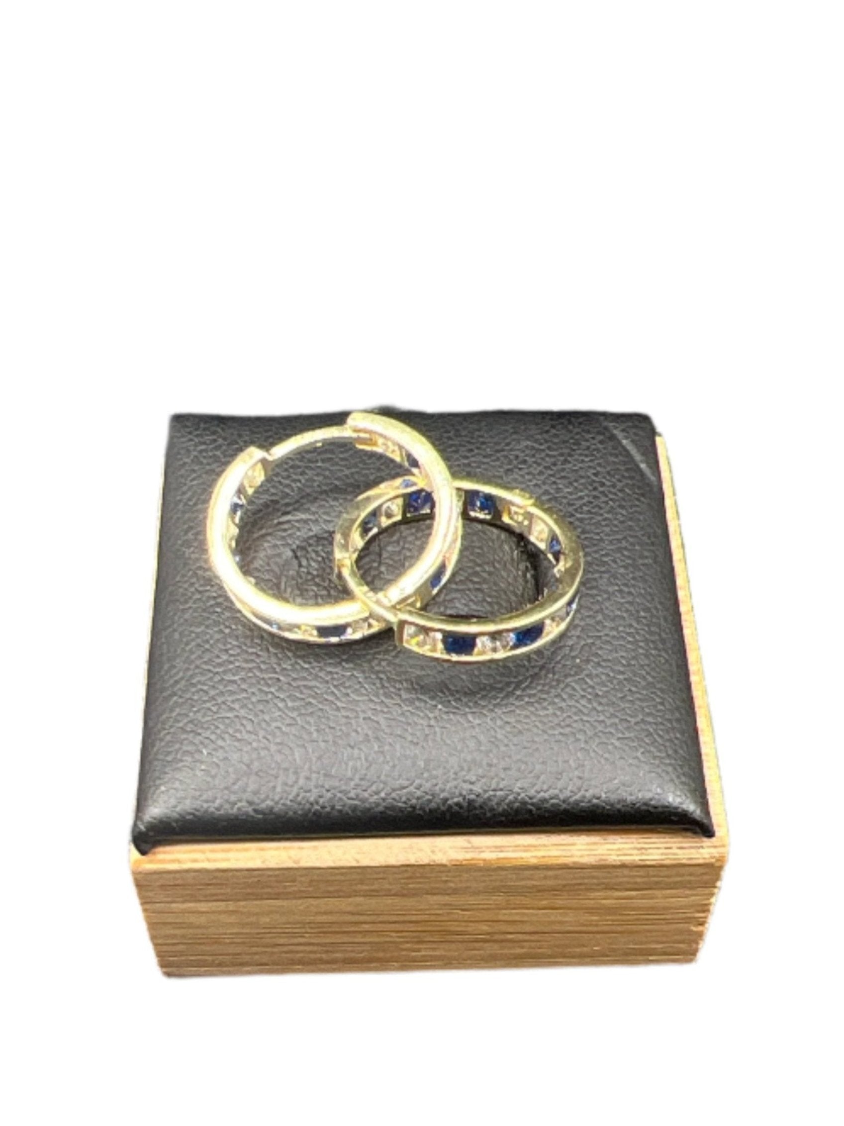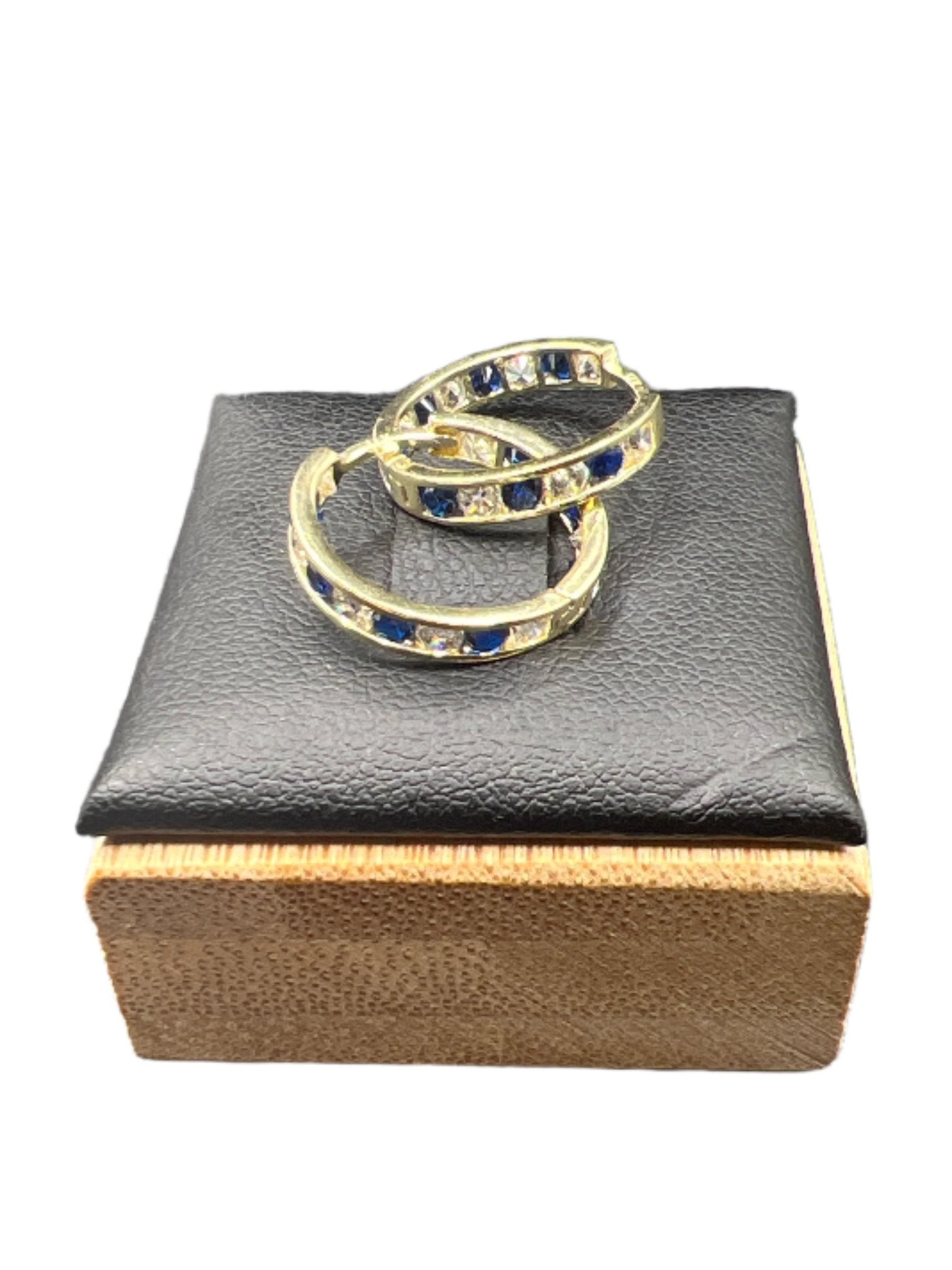 **353- Pendientes de aro de oro de 14 quilates con piedras azules y blancas de 16 x 2,80 mm