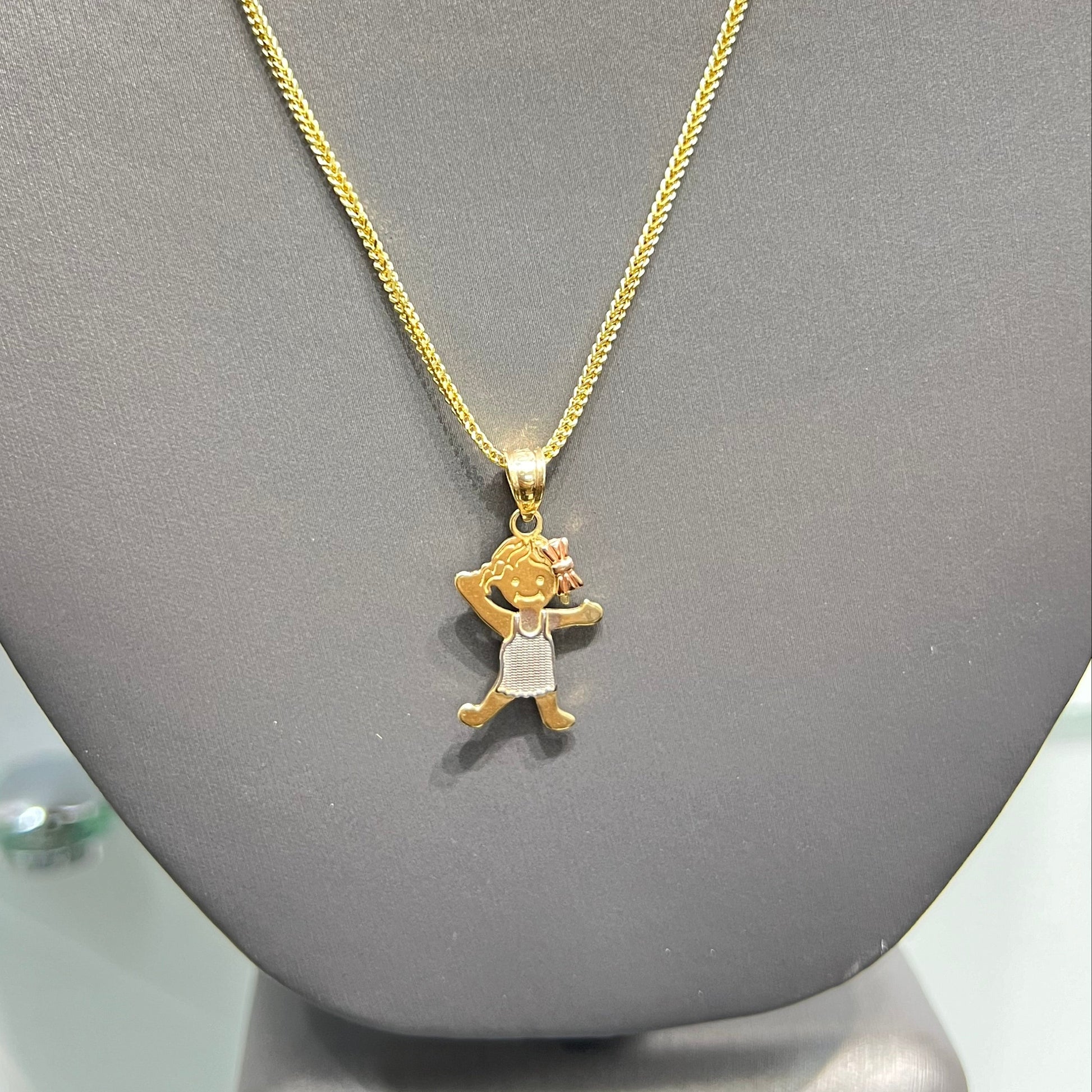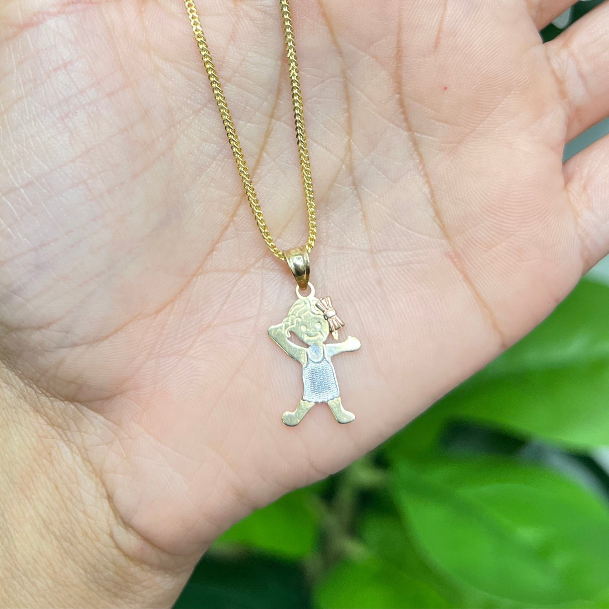 NEW 14k Yellow Gold Pendant with 1 girl wearing 1 bow in her hair. Made of 14k real gold.