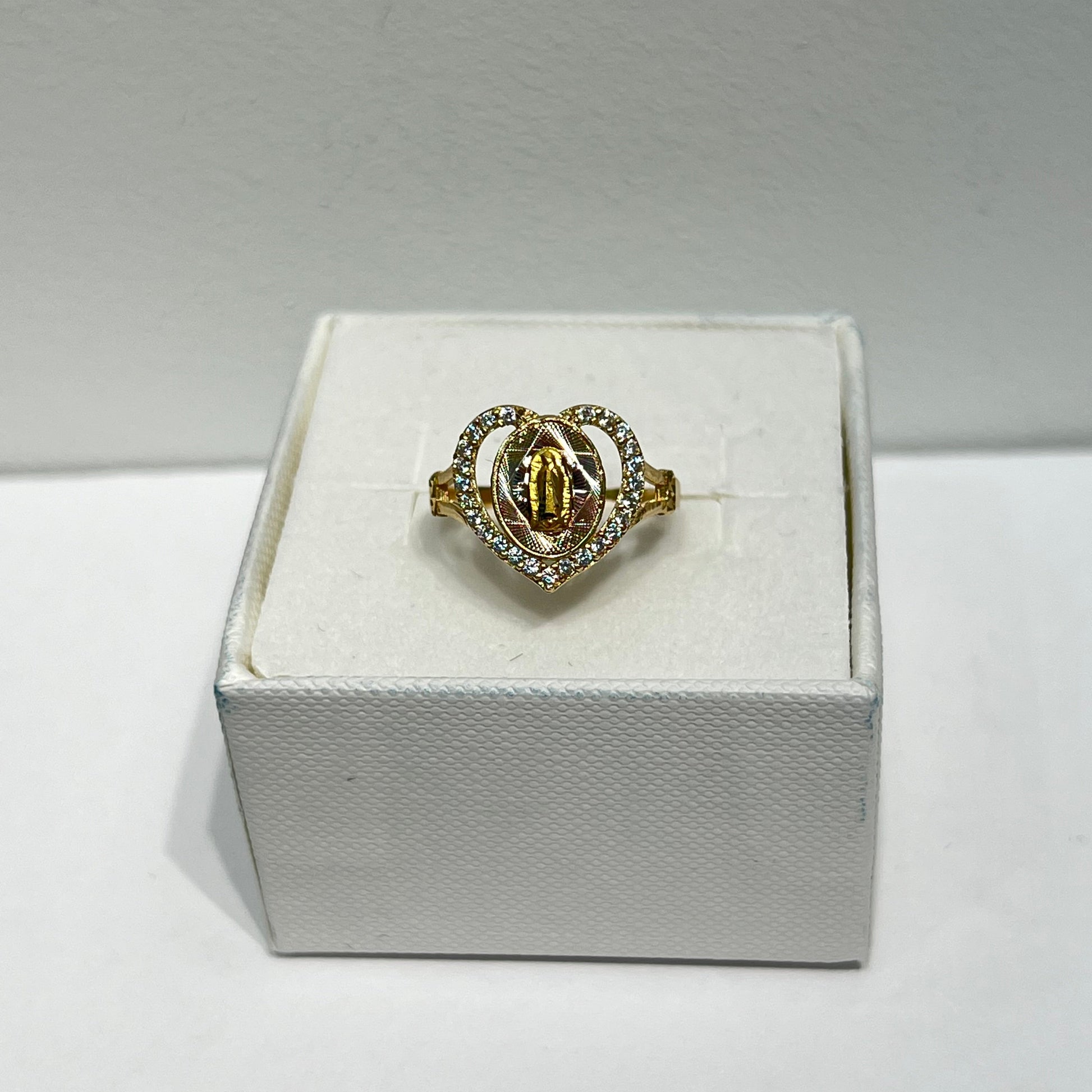 1189-NEW 14K Heart Shape Our Lady Of Guadalupe Ring W.G