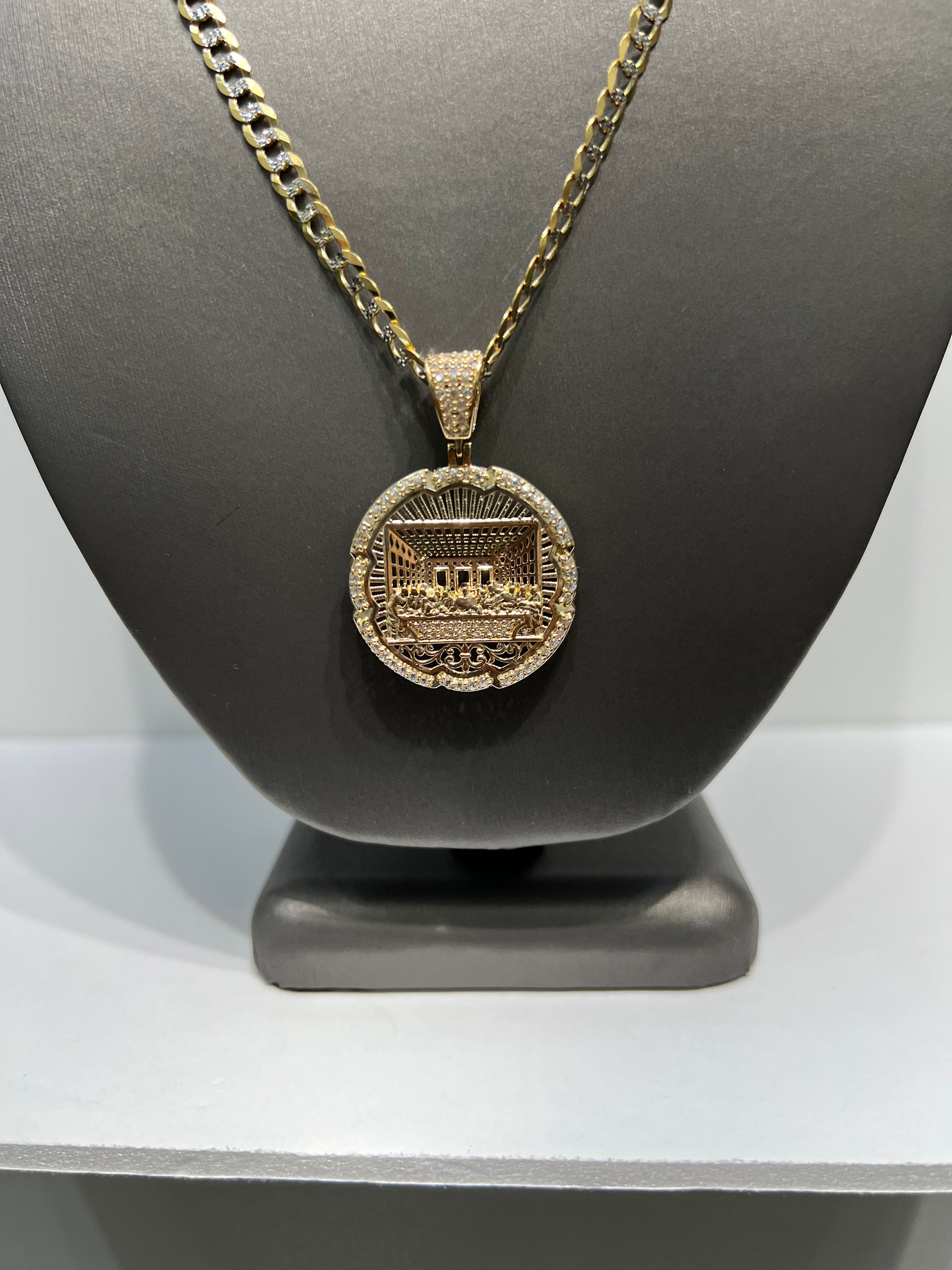 1218- NEW 14K Round The Last Supper Cz Pendant W.G