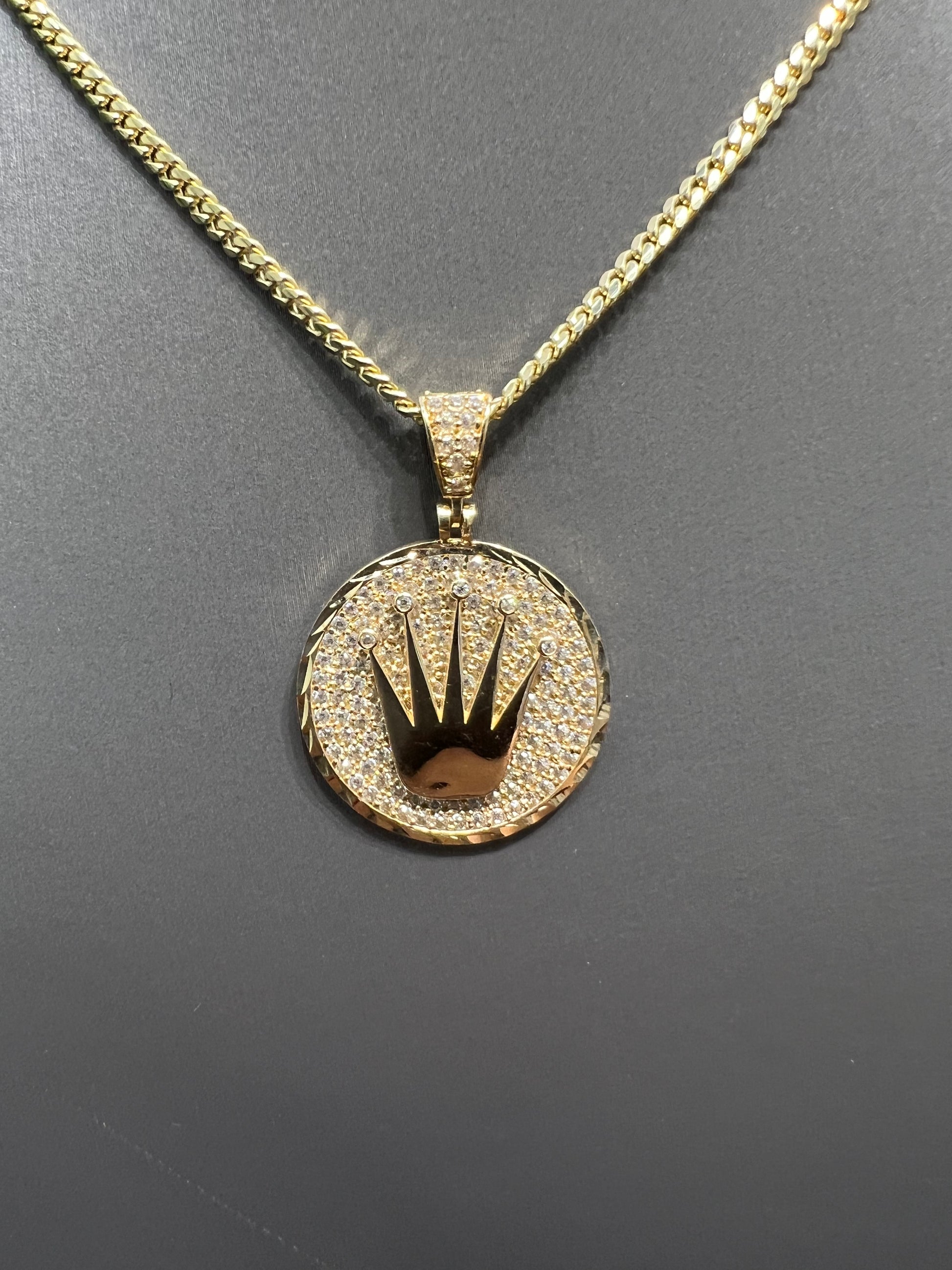 1219- NEW 14K Rolex Style Full Cz Gold Pendant W.G