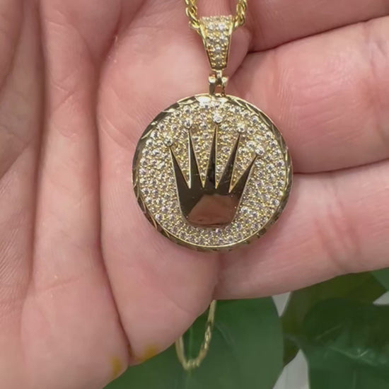 NEW 14K 14K Rolex Style Full Cz Gold Pendant. made of 14k Yellow Gold.