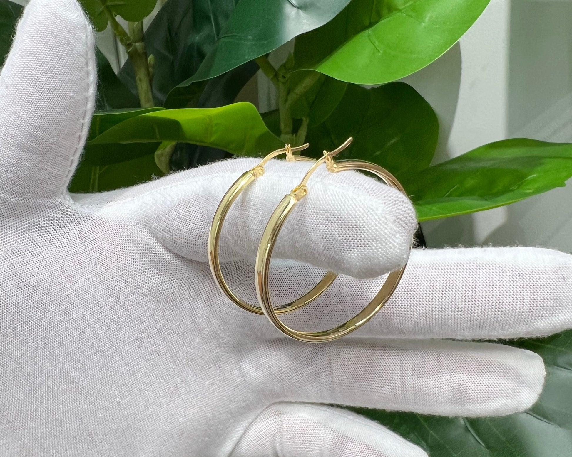 NEW 14K Hollow Hoop earrings 3.2x37mm. Made of 14K Yellow Gold