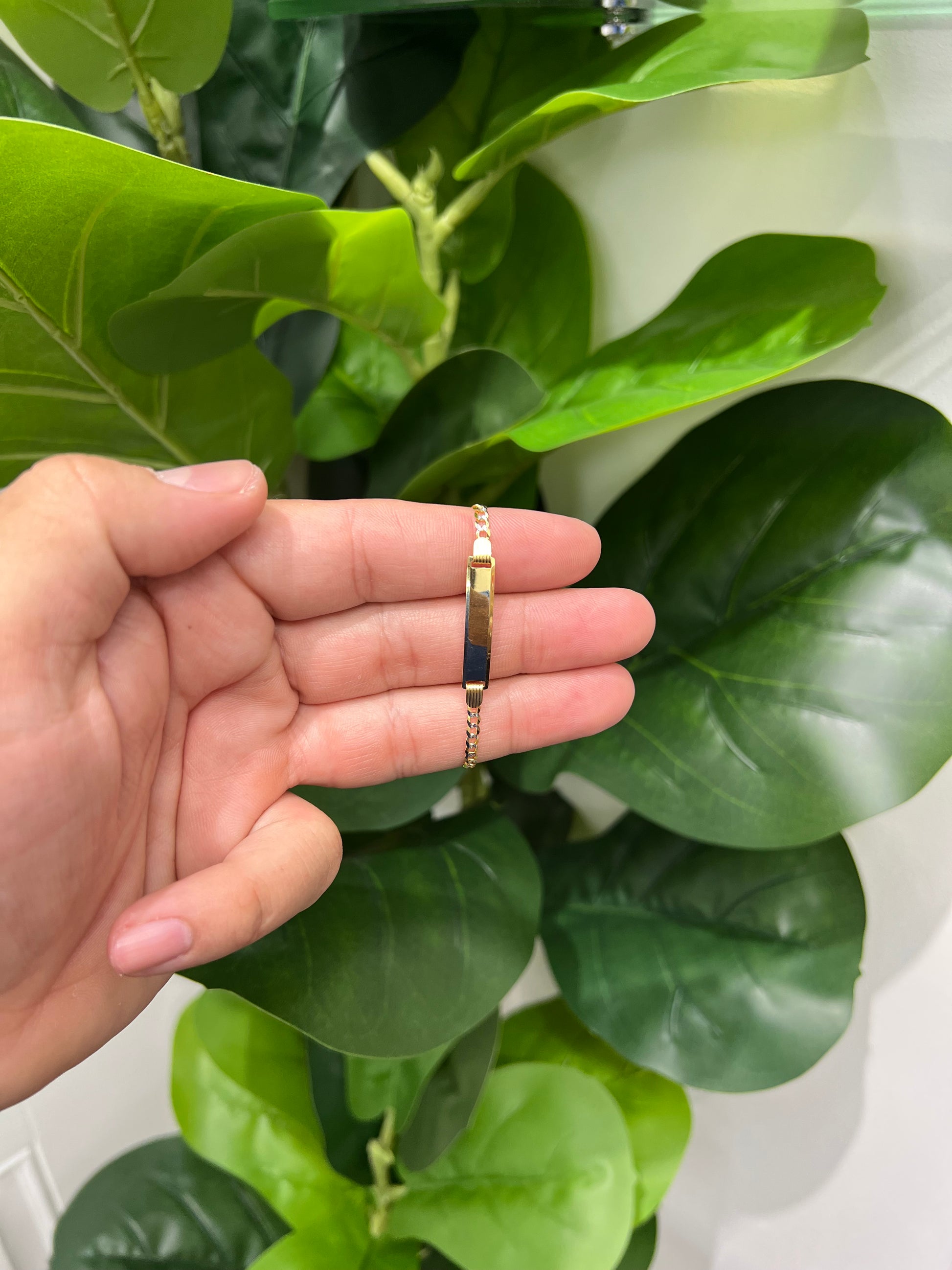 NEW 14K Cuban Curb ID Bracelet Two Tone 5.5”. Made of 14K yellow gold.