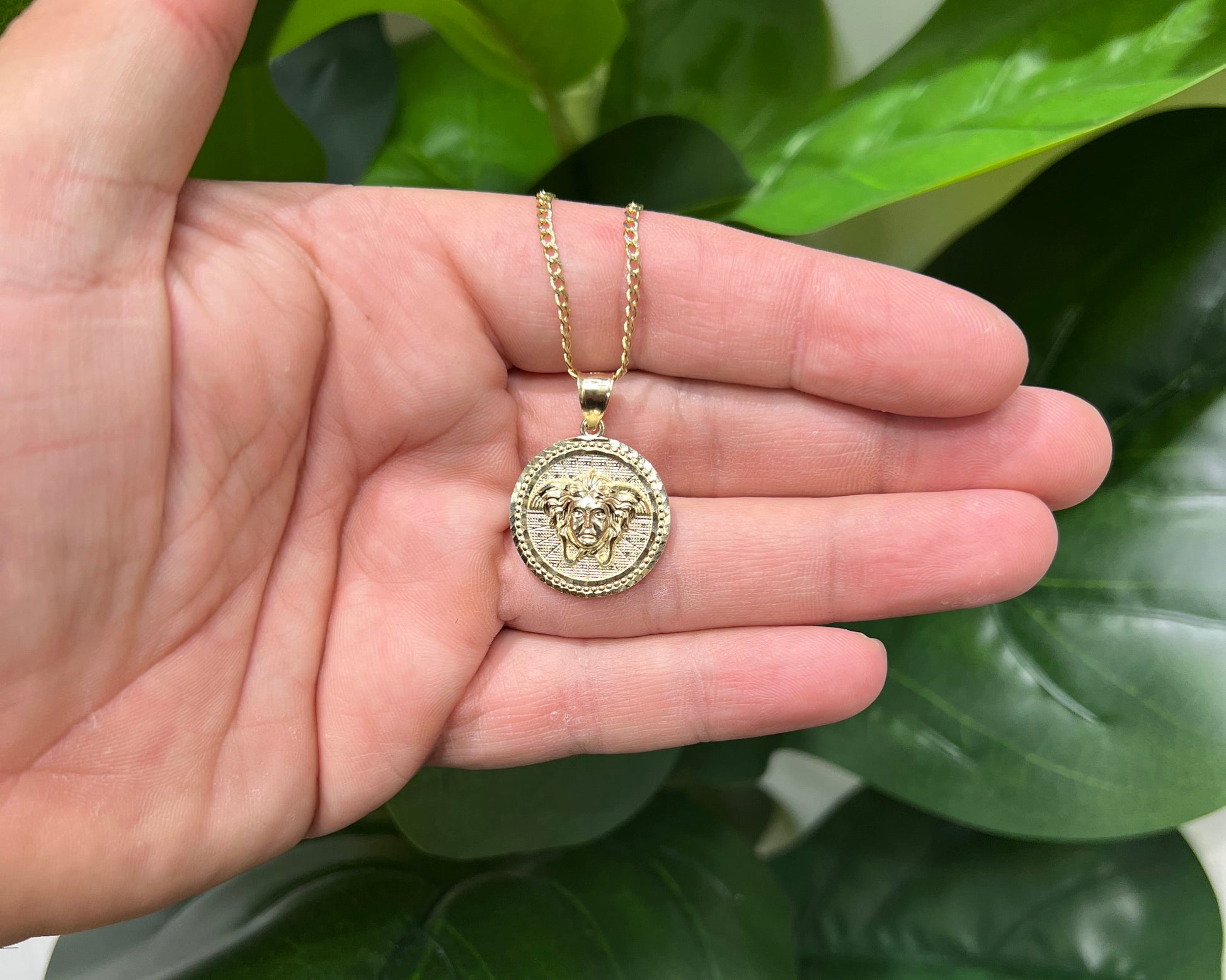 NEW 10K Gold Medusa Round Pendant. Made of 10k Yellow Gold