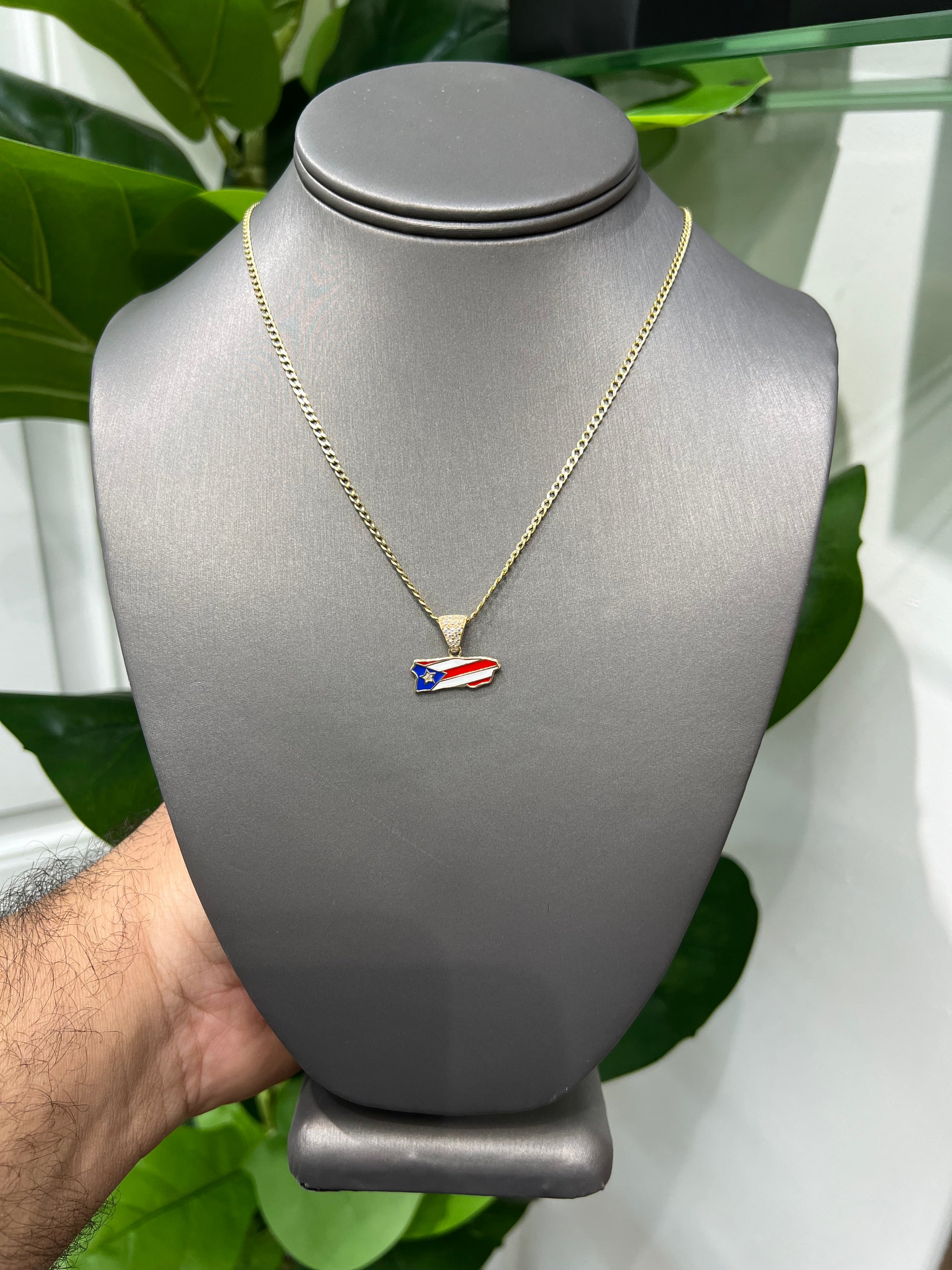 1313- NEW 10K Gold Puerto Rican Flag Pendant W.G