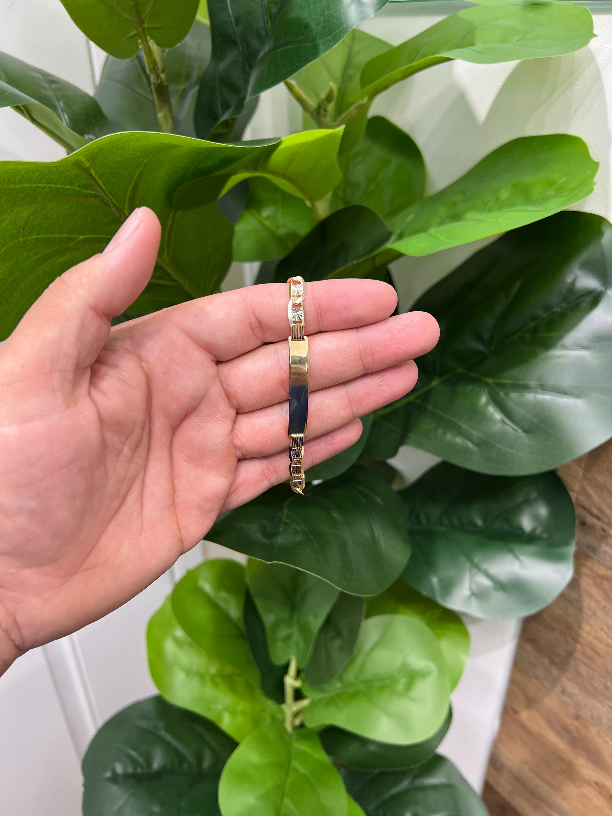 1333- NEW 14K Valentino ID Bracelet Tri Tone W.G