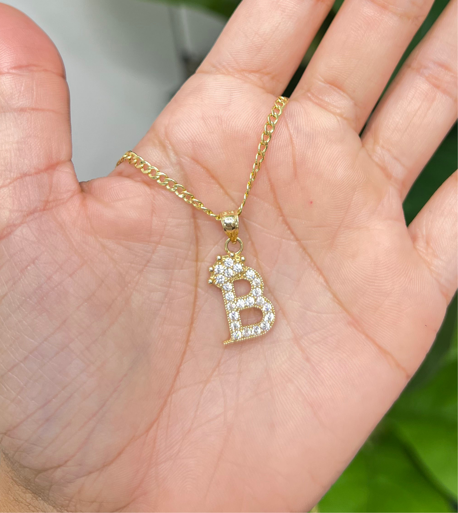 NEW 14K Yellow gold, Letter “B” pendant with clear zirconia stones and crown on top left. Made of Real 14k Yellow Gold
