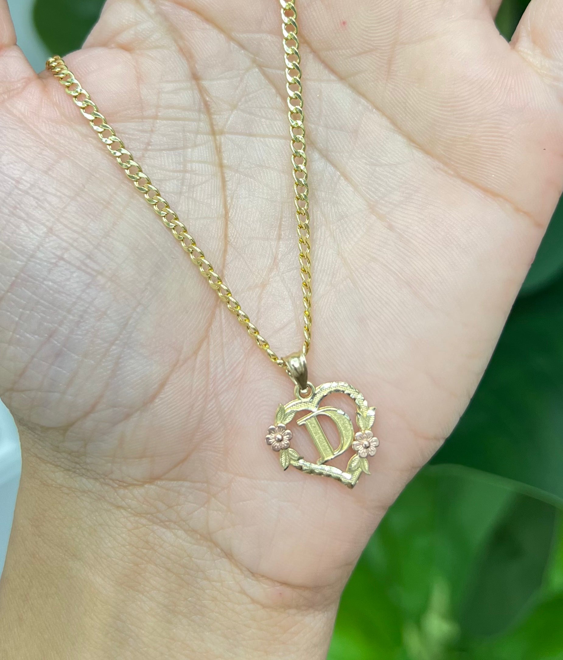 NEW 100% 14K Yellow gold, letter “D” heart shape pendant