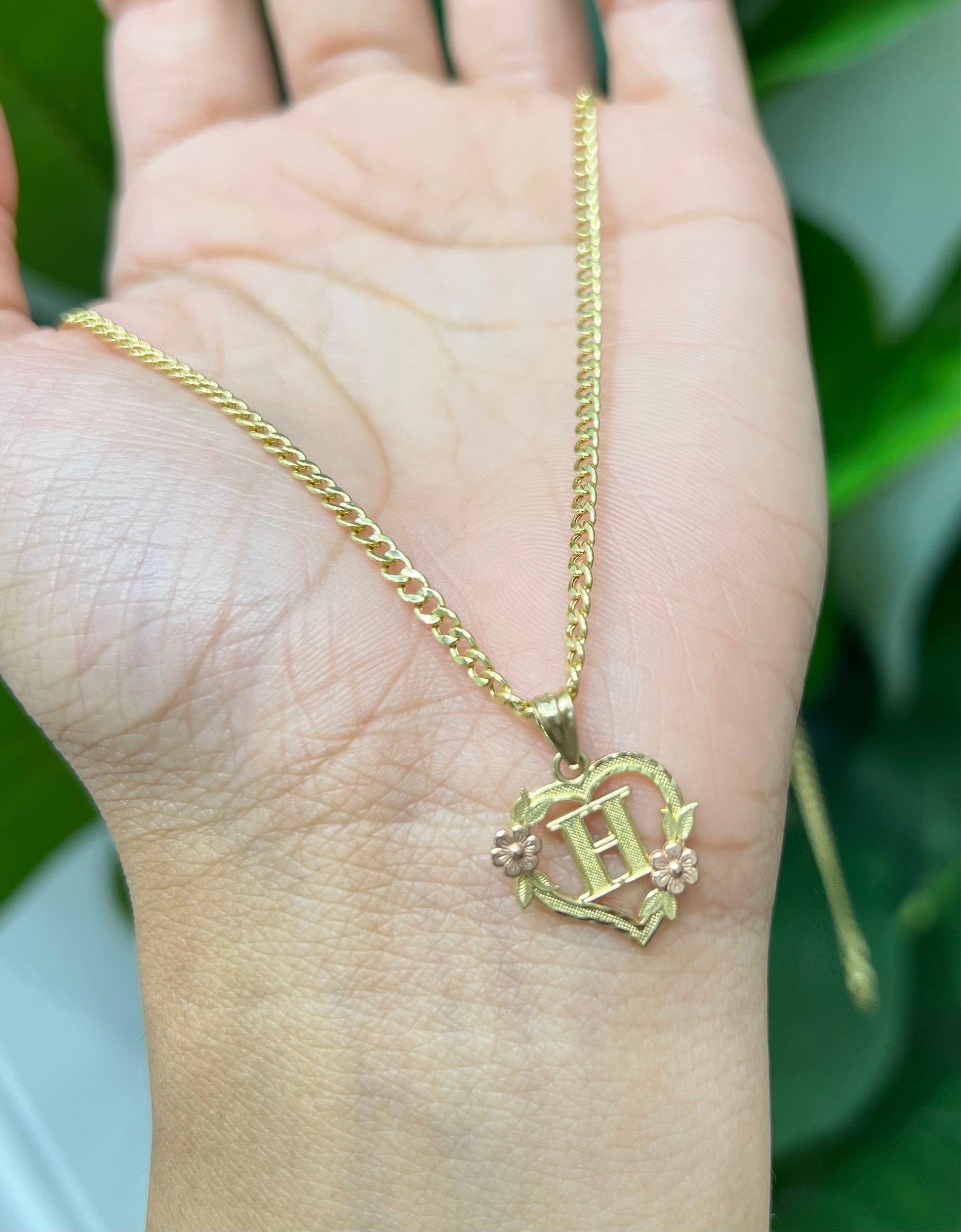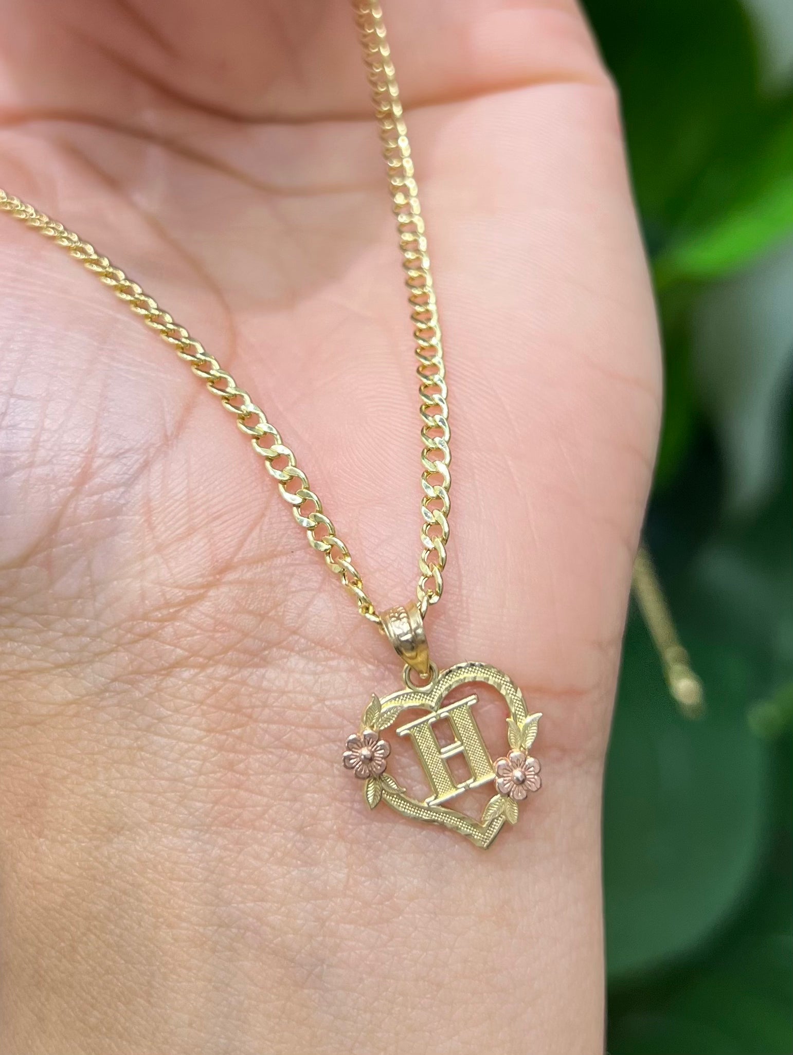 0048- NEW 14K Letter “H” Heart Shape Pendant W.G