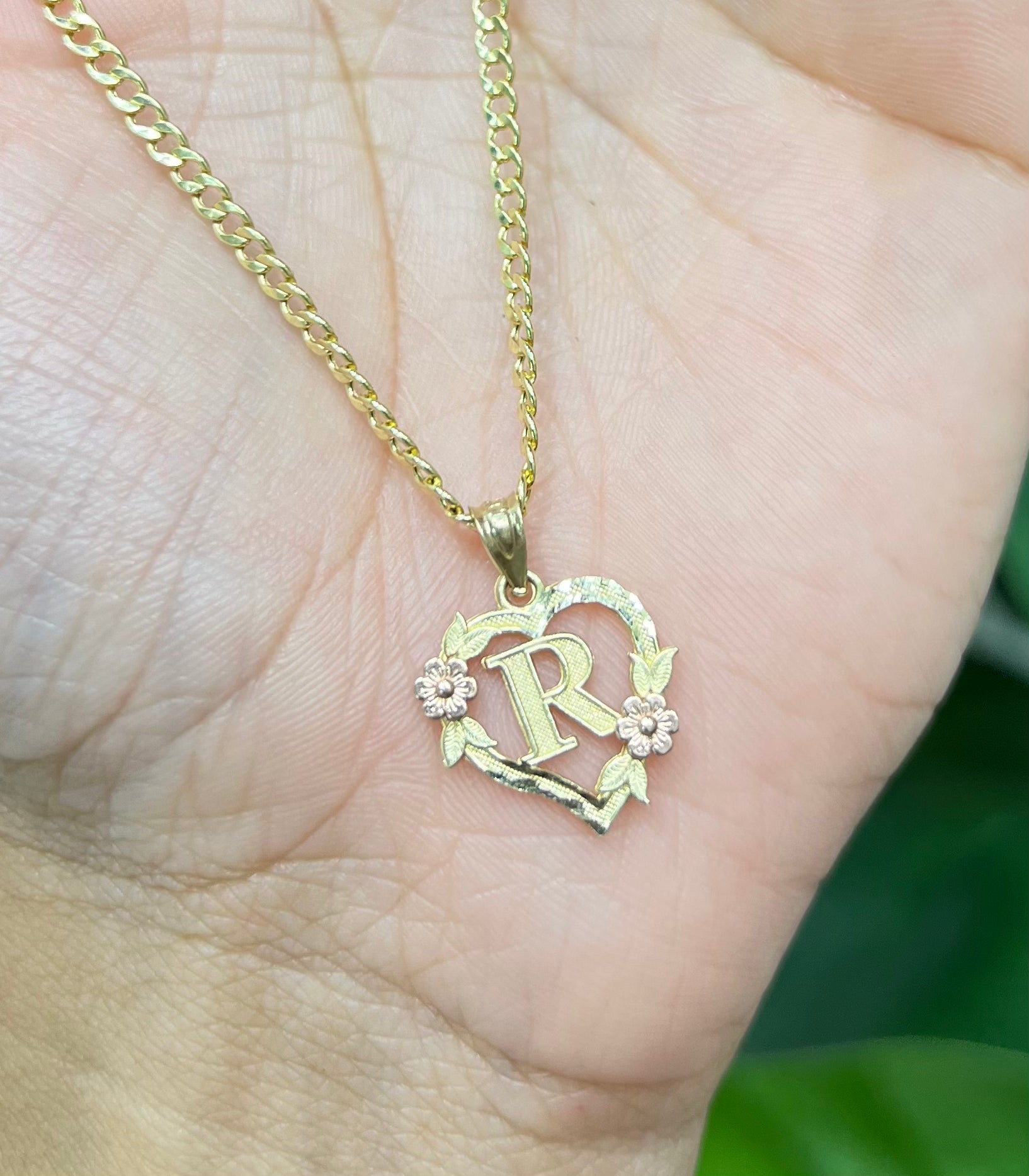 NEW 100% 14K Yellow gold, letter “R” heart shape pendant