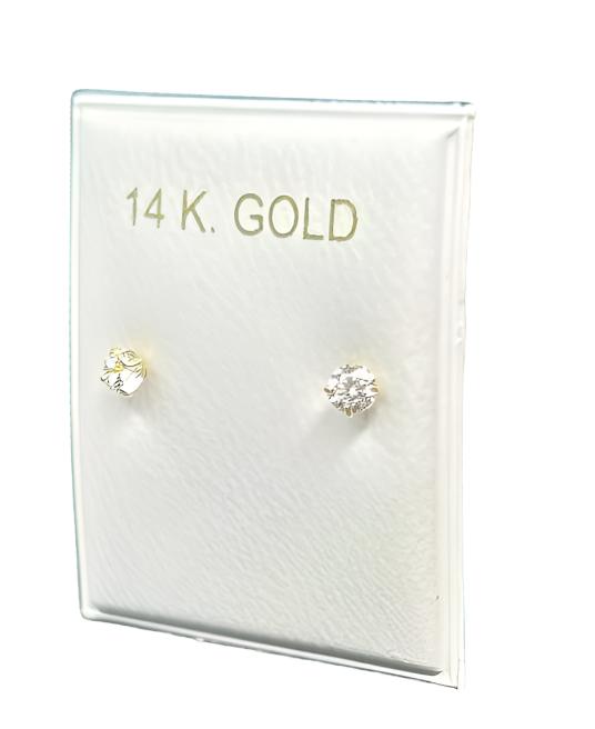 001- NEW 14K Cubic Zirconia Gold Earrings (3mm).W.G