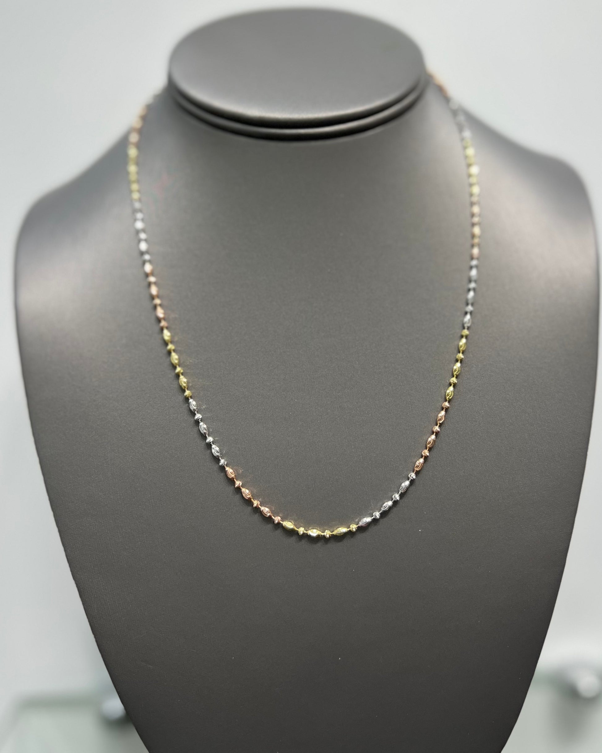 0095- NEW 14K Oval and Bead Tri- Color Chain(1.95mm) W.G
