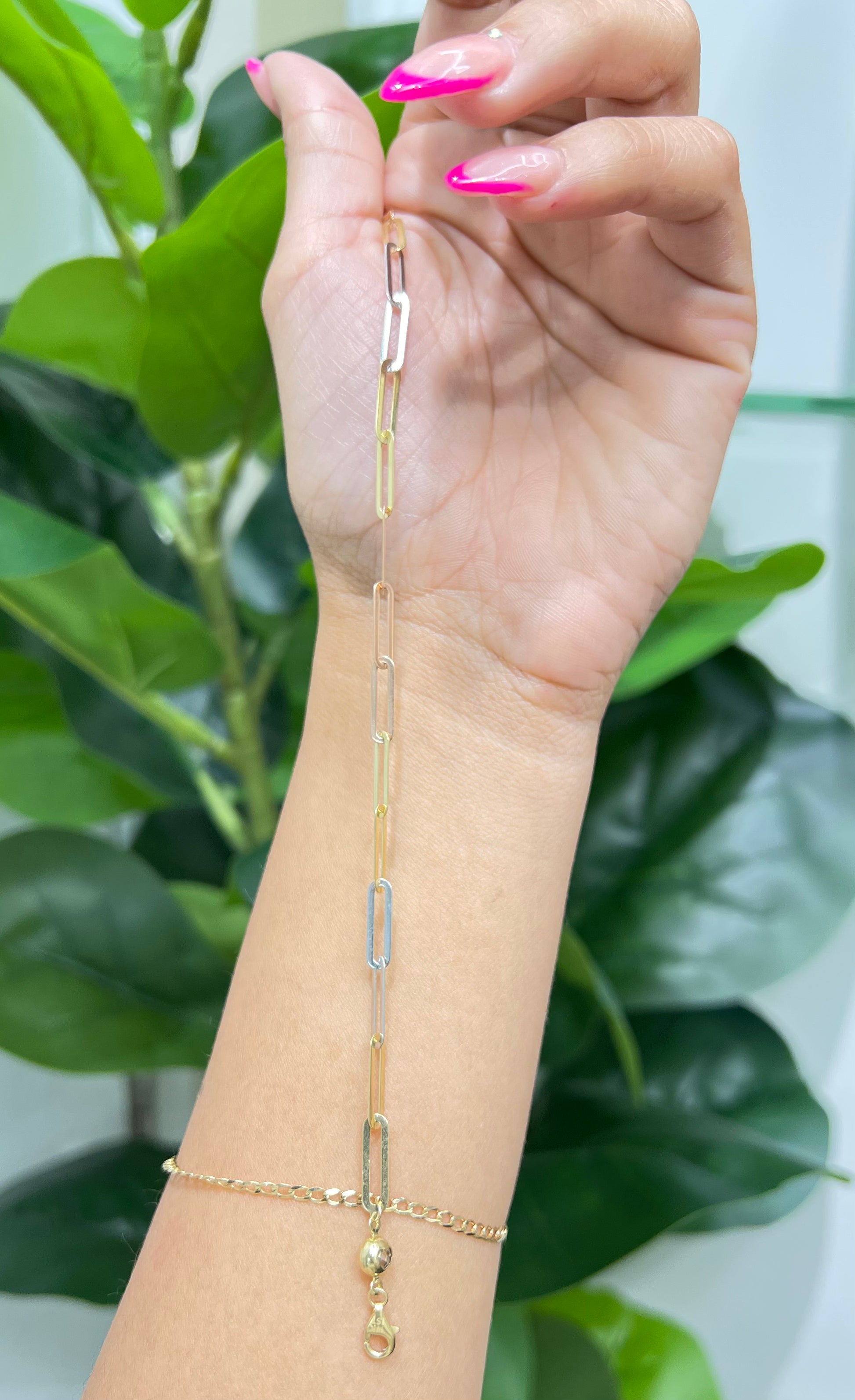 NEW 14K Yellow Gold Paper Clip Chain Bracelet Tri-Color. Made of 14k real gold.