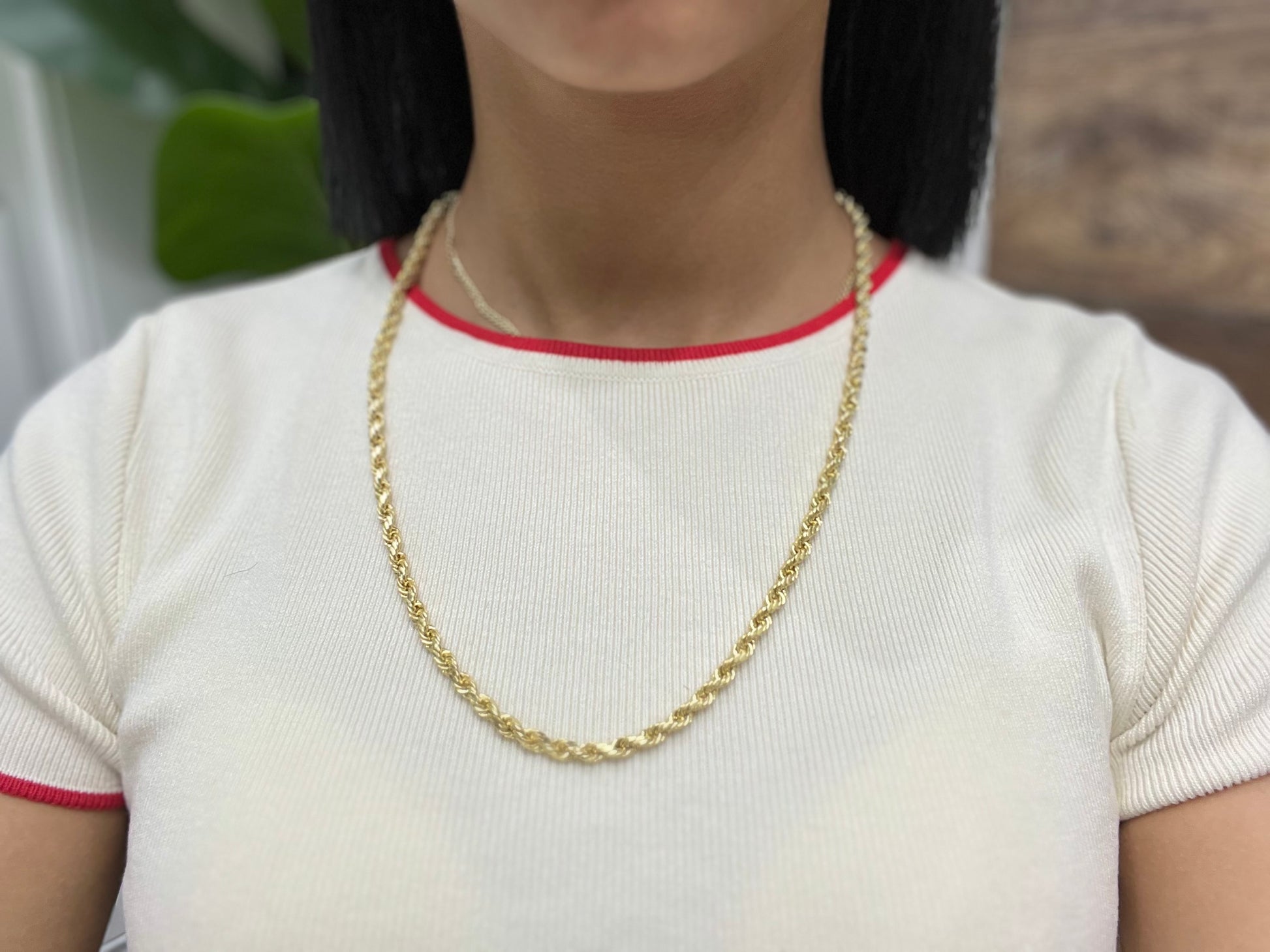 NEW 14K Semi Solid Rope Chain 22” length Made of Real 14k Yellow Gold.