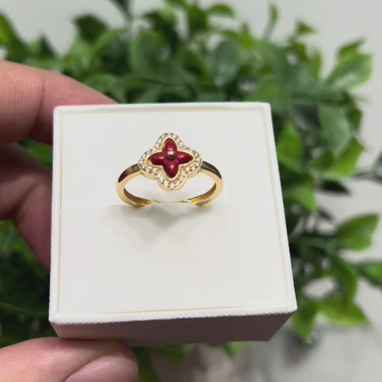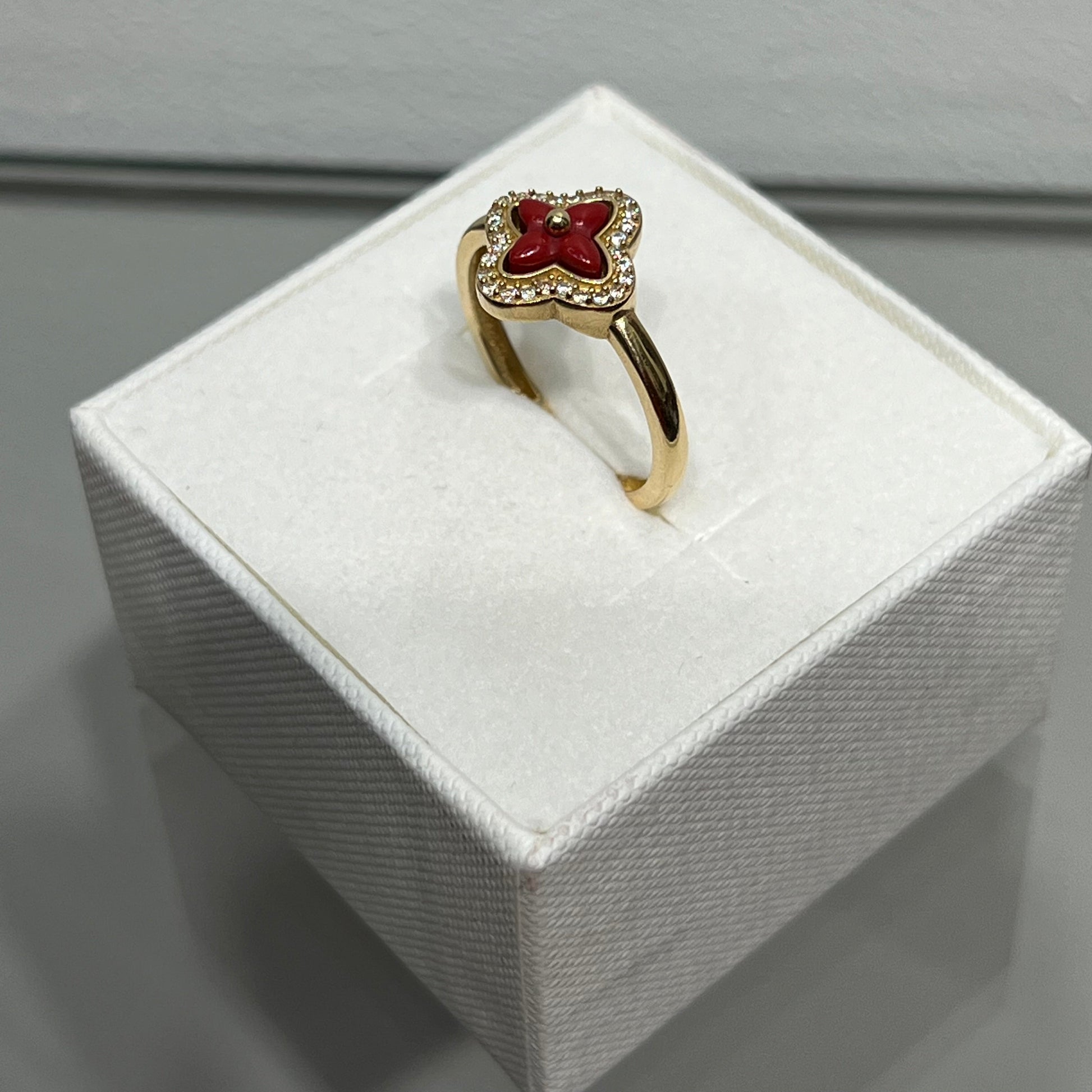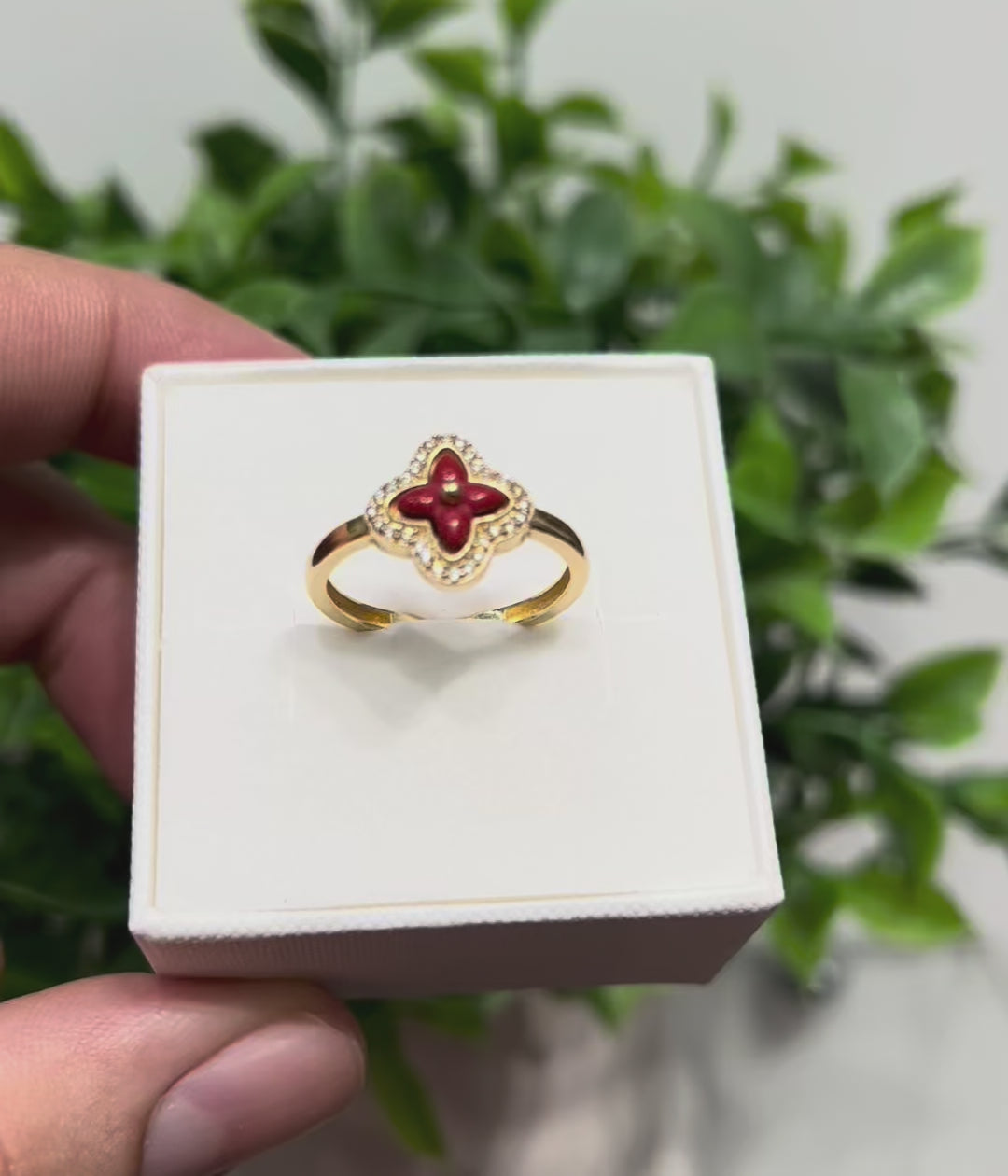 NEW 14K Red Trebol with Cubic Zirconia Ring. made of 14k yellow Gold