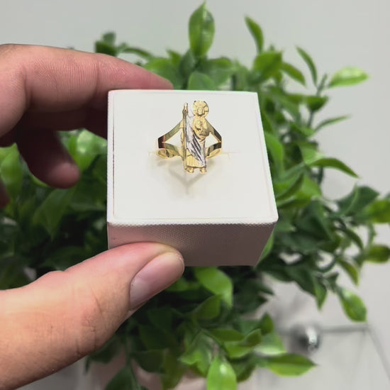 14K Saint Jude Ring – Faith, Style & Strength. Wear your faith with power. This solid 14K gold ring features Saint Jude Thaddeus, known as the patron of hope and protection. A bold symbol of devotion, strength, and resilience